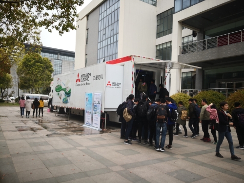 Mitsubishi Electric (China) educational sector visited HEP on April 2nd 2019. The group led by Mr. Xu, the sector head, brought their featured Mitsubishi wagon loaded with the state-of-the-art Factory Automation (FA) demonstrations. During the lunch break, the Mitsubishi field application engineers gave FA demonstrations to a long line of eager engineering students, and explained the principles and technological trends of FA to the students. Mr. Yang, the Chief Technology Engineer, delivered a talk in the lecture hall in the afternoon, sharing Mitsubishi's e-f@ctory technologies and vision for industry-university collaboration.