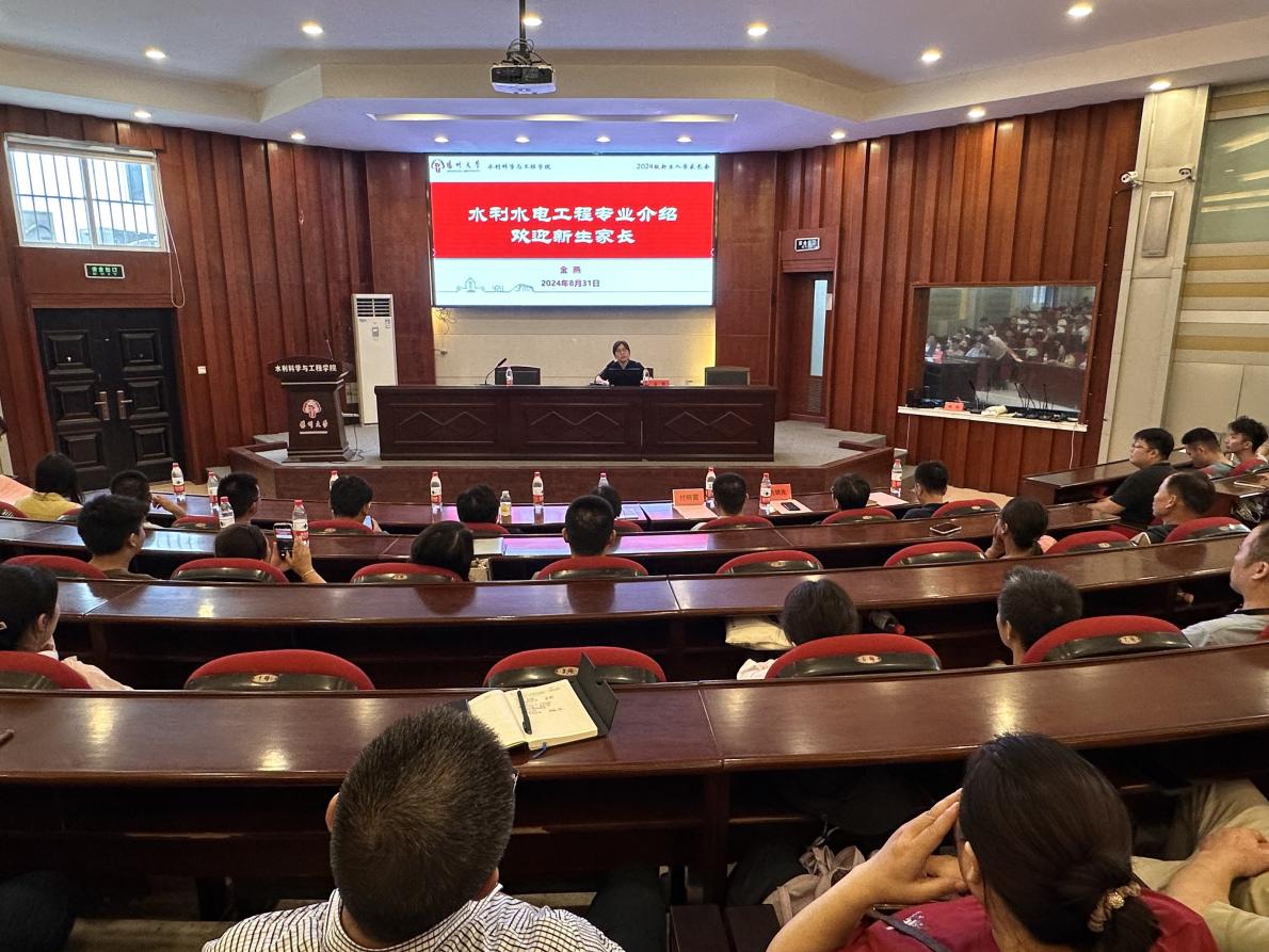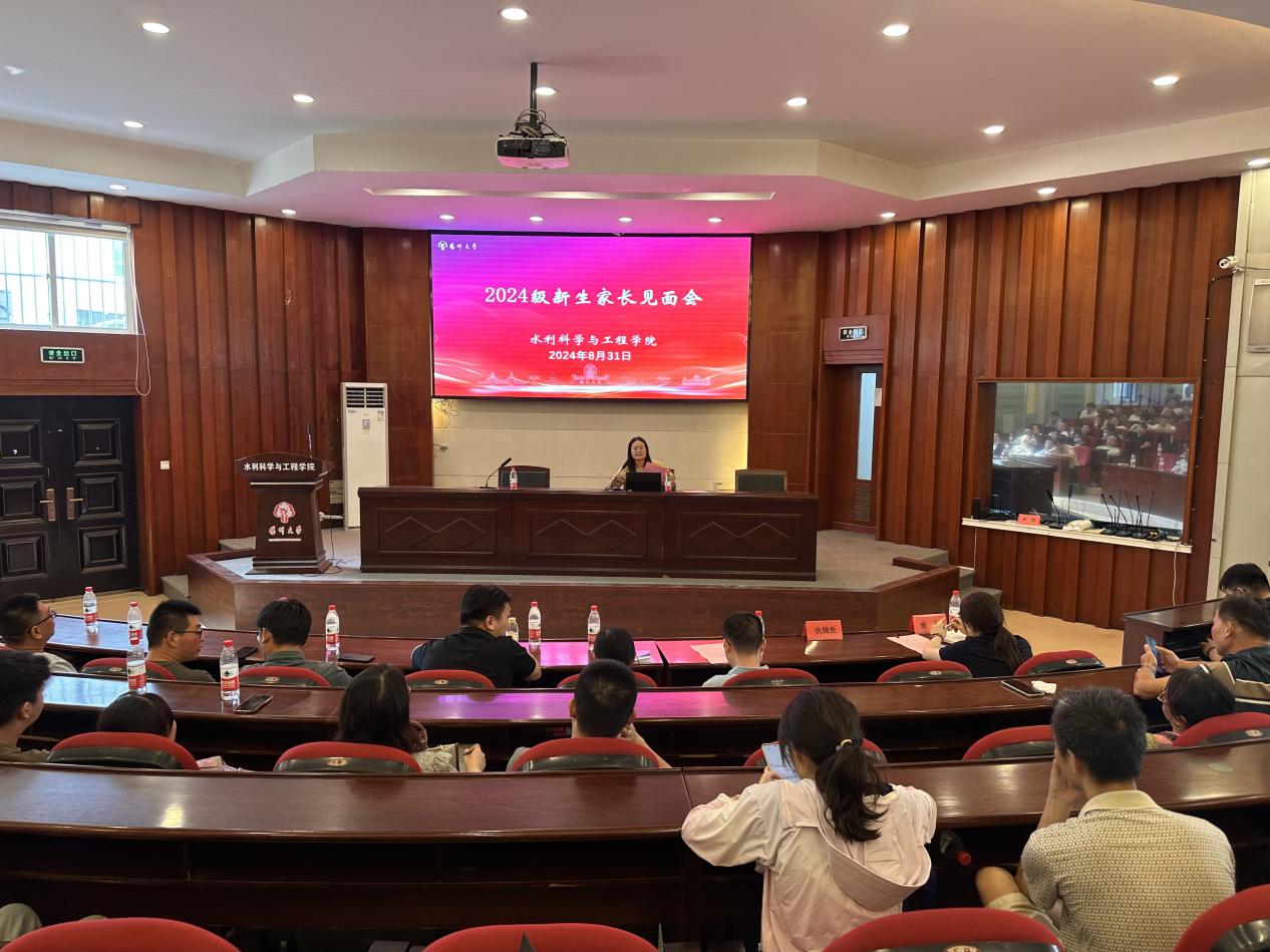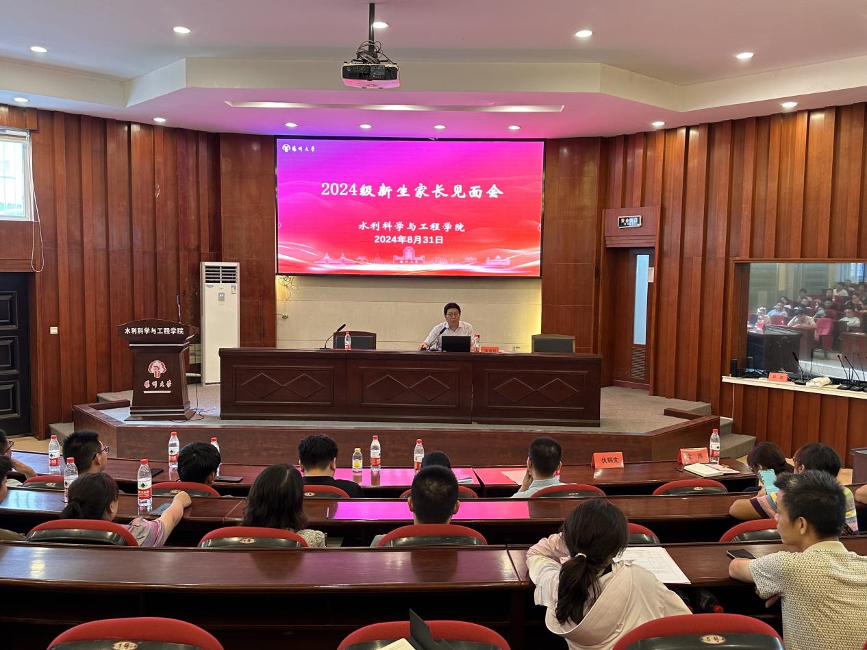 龚懿向全体新生家长的到来表示欢迎,围绕学院发展、学科建设、师资队伍、教学体系、科研平台、人才培养和文化传承创新等多方面对学院概况进行详细而深入的介绍。指出水利学院具备完善的育人体系、优秀的师资队伍、显著教学成果和丰富的教师资源,致力于培养思想品德好、综合素质高、专业基础宽、创新能力强的复合型人才。