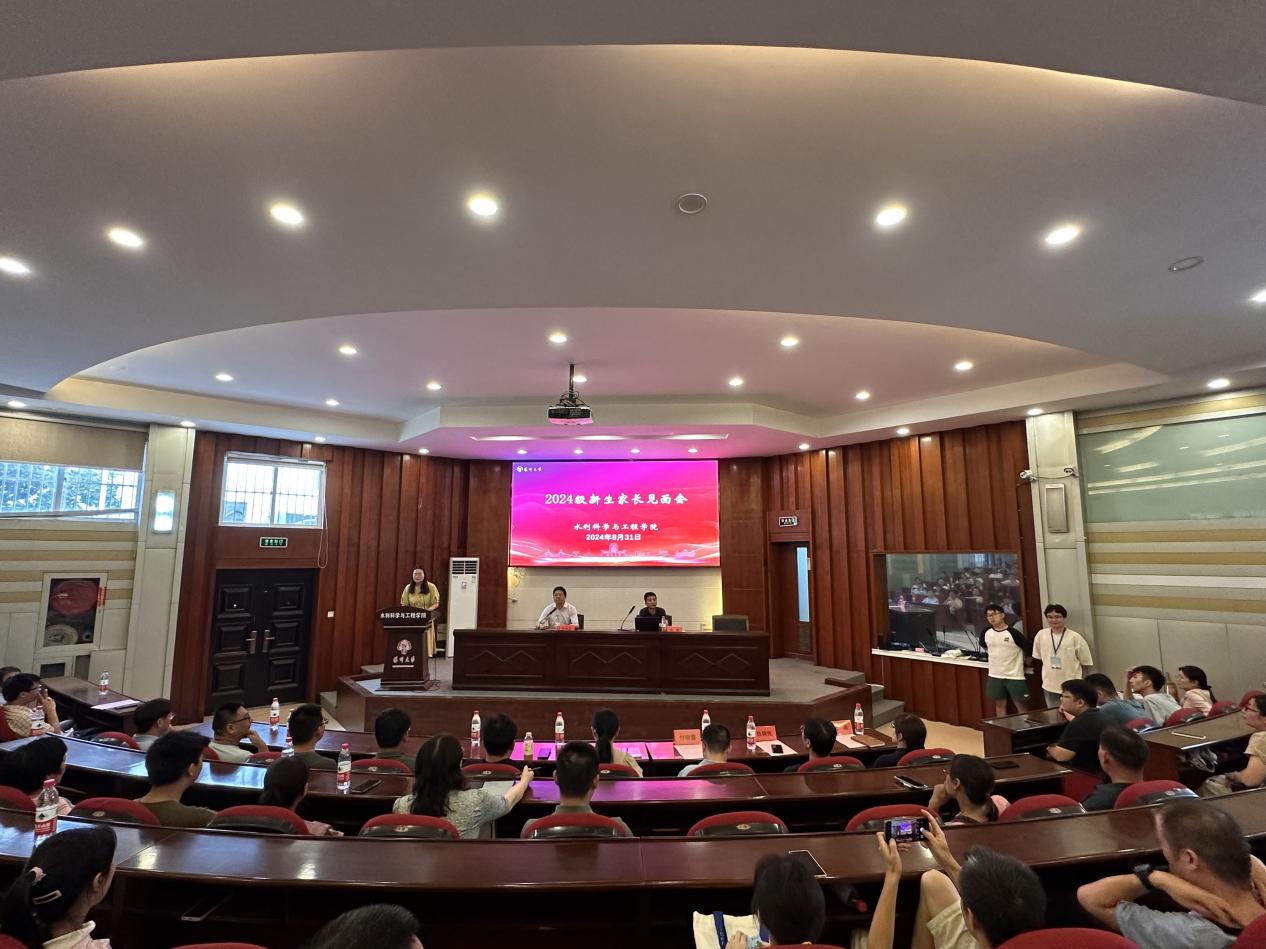 为搭建家校联动桥梁,促进家校深度沟通合作,把握新生发展关键节点,共同为新生的成长保驾护航。8月31日中午,我院在水利楼报告厅召开2024级新生家长见面会。院党委副书记张俊桂,副院长龚懿,各系科主任,全体辅导员,新生班主任以及200余名2024级新生家长参加会议。会议由团委书记吴媚主持。