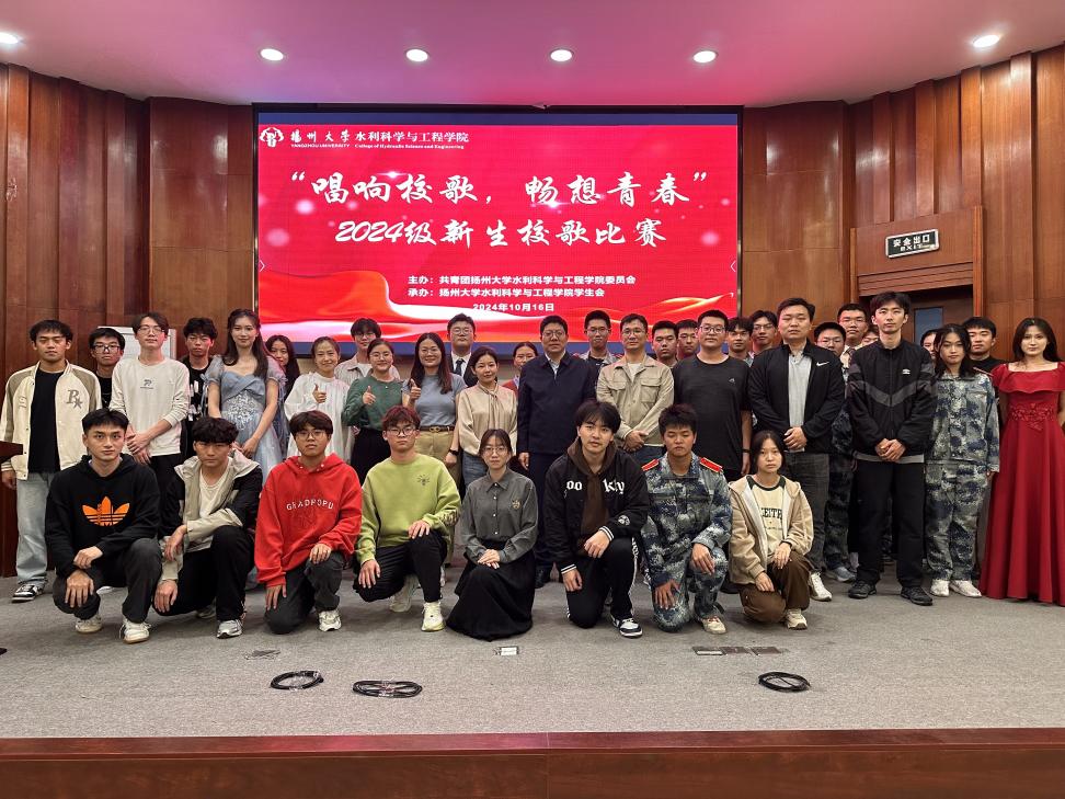 四季更迭,时序转换。伴随秋风的讯息,10月16日晚,由水利科学与工程学院团委主办,水利科学与工程学院学生会承办的2024级新生校歌比赛在水利楼一楼报告厅举办。院党委副书记张俊桂,院团委书记吴媚,辅导员安文丽、杨蝉溪、莫伟,2024级新生班主任出席活动,2024级全体新生参加活动。