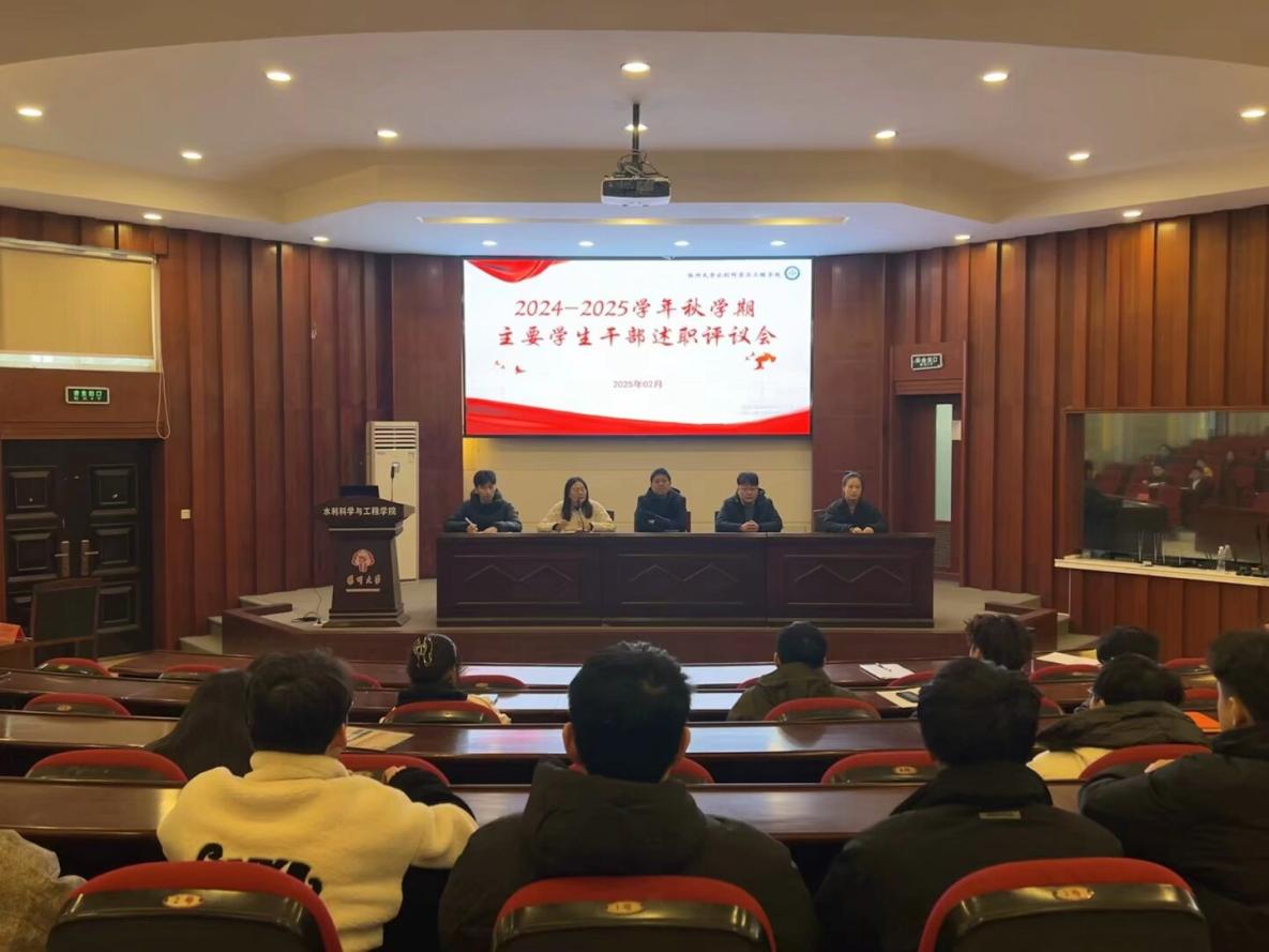 为持续推进学生组织工作走深走实,增强学生组织的执行力和凝聚力。3月5日下午,我院在水利楼报告厅举行了2024——2025学年水利科学与工程学院主要学生干部述职会议。院党委副书记张俊桂,团委书记吴媚,全体辅导员出席会议,主要学生组织全体成员参加此次会议。