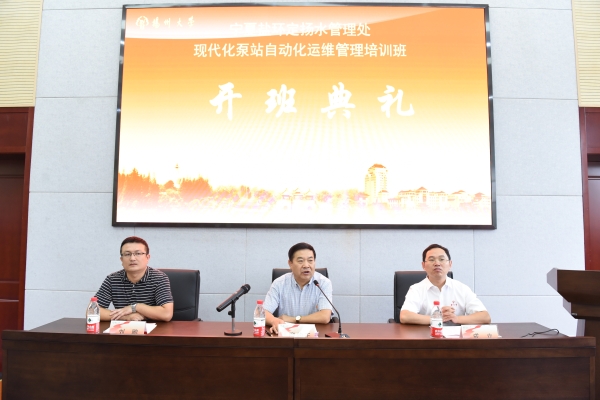 近日,宁夏盐环定扬水管理处现代化泵站自动化运维管理培训班在水利科学与工程学院举行。成立副院长出席开班典礼并致辞,宁夏盐环定扬水管理处党委书记柳钧正出席典礼并讲话、学院周济人副院长、张海翎副院长等出席了开班典礼。