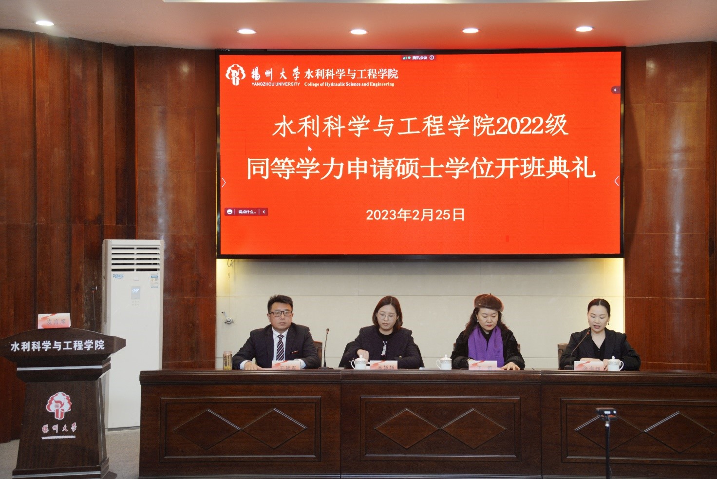 2月25日下午,由江苏省水利厅和扬州大学联合举办的2022级同等学力申请硕士学位班在水利学院报告厅举行开班典礼。省水利厅人事处副处长乔娇娇、校研究生院副院长王莉出席并讲话,院党委书记王建军致辞,副院长张海翎主持开班典礼。