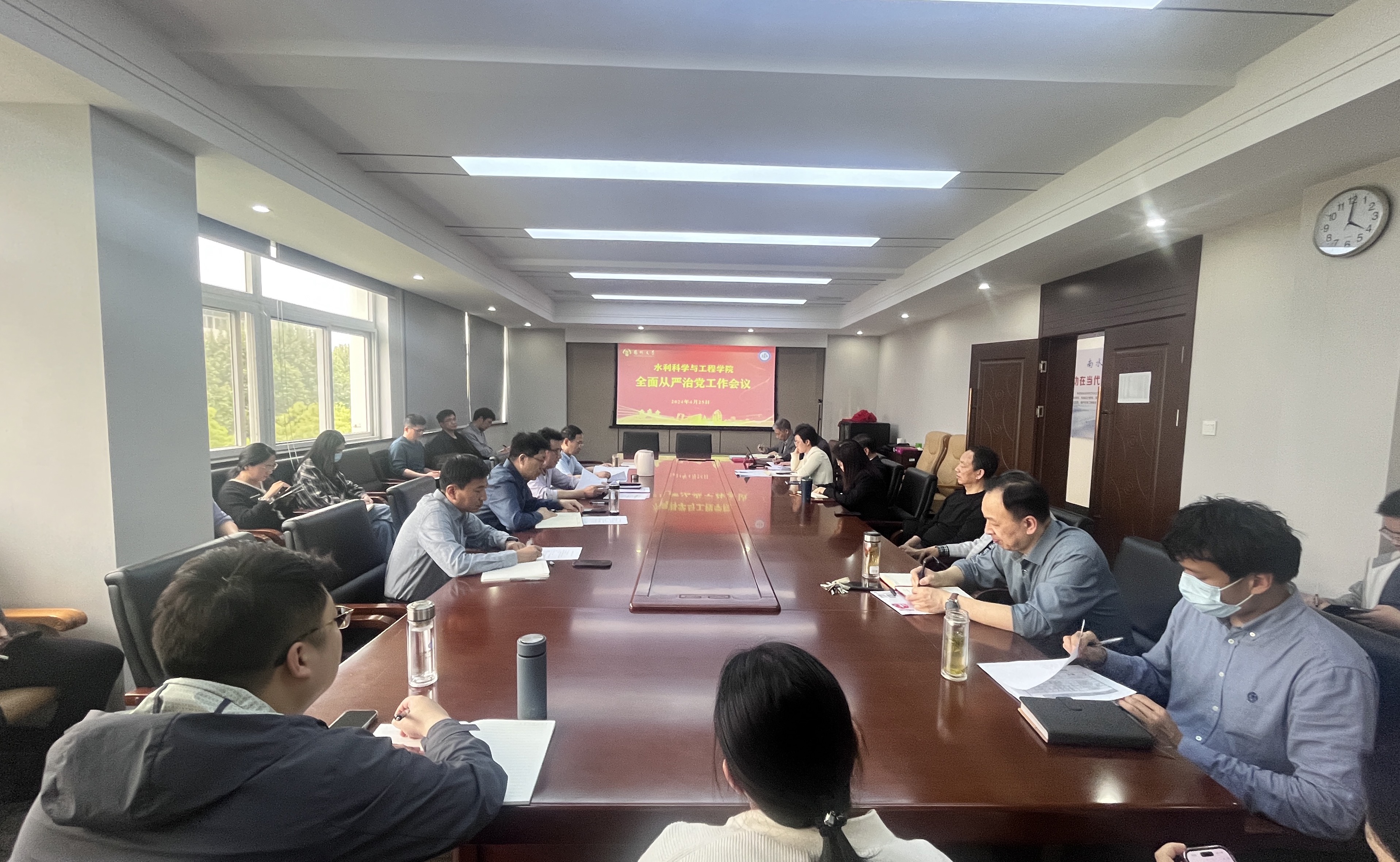 4月25日下午,学院在水利楼402会议室召开2024年全面从严治党工作会议。全体院领导、学科带头人、院内设机构负责人、各党支部书记、全体科级干部、院工会负责人参加会议。院党委书记王建军主持会议。