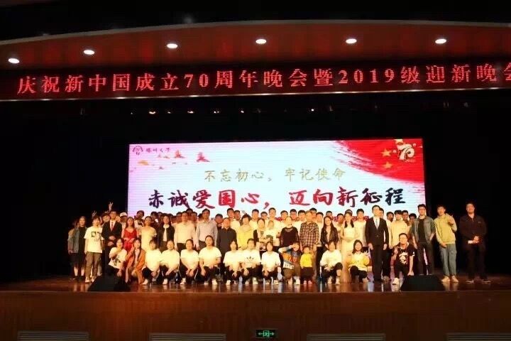2019年10月13日,水利科学与工程学院在荷花池大学生活动中心三楼小剧场举办了庆祝新中国成立70周年“赤诚爱国心,迈向新征程”暨2019级迎新晚会。院关工委刘怀玉老师、院党委书记杨延红、院长成立、副院长周济人、副院长张海翎、党委副书记左红梅、全体辅导员和全体19级本科生、研究生出席晚会。