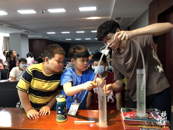 “这就是我们常说的虹吸现象,除了我们刚刚所做的实验,生活中,我们给鱼缸换水,抽水马桶,都是利用了这样的原理。”大学生们解释道。