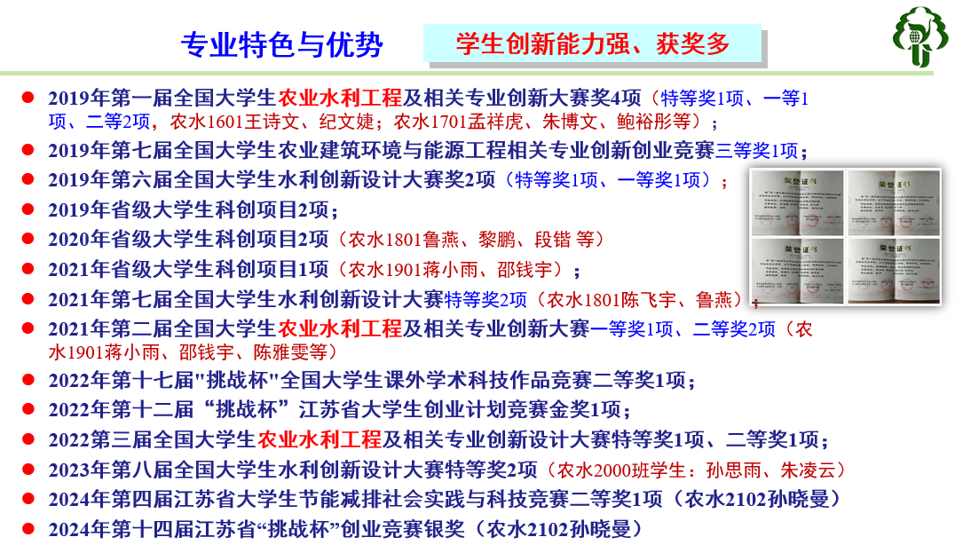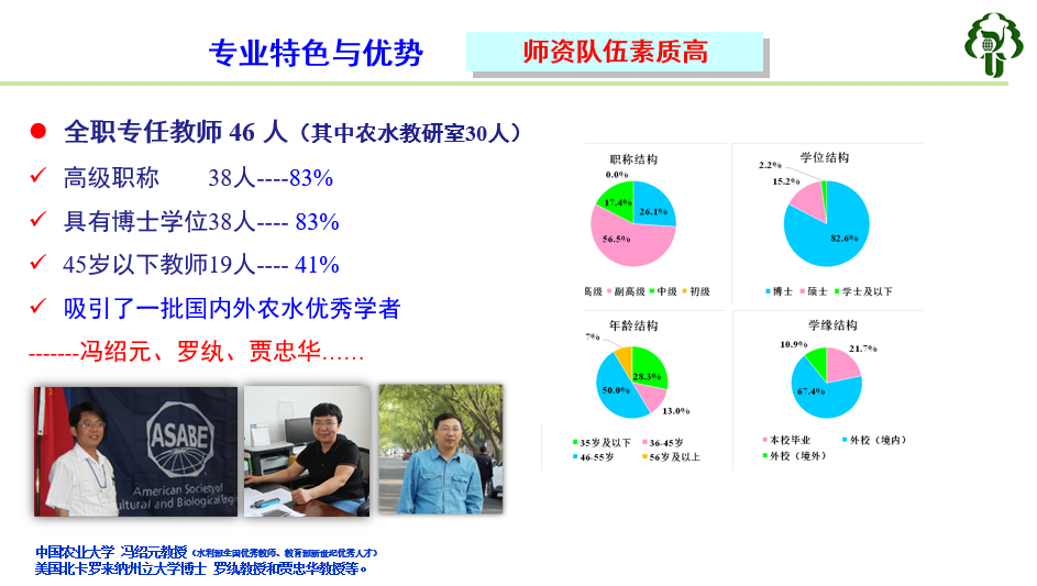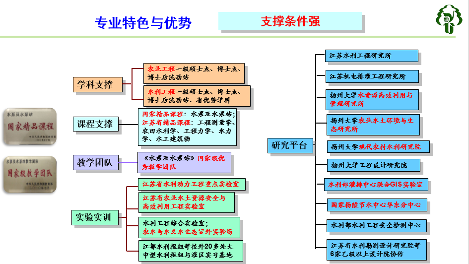 农业水利工程专业办学历史悠久,1958年开始招收本科生,1981年获批国务院首批硕士点,2003年获批博士点,2006年获批博士后流动站,2016年通过国家工程教育专业认证,2019年入选首批国家级一流本科专业建设点。