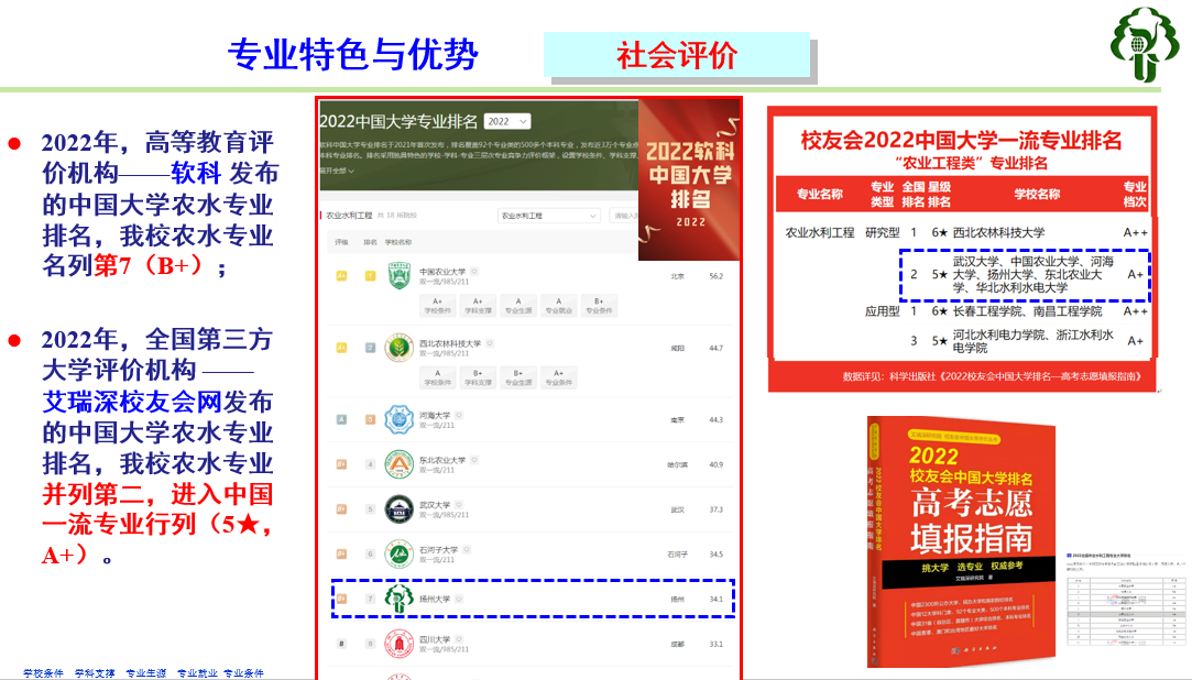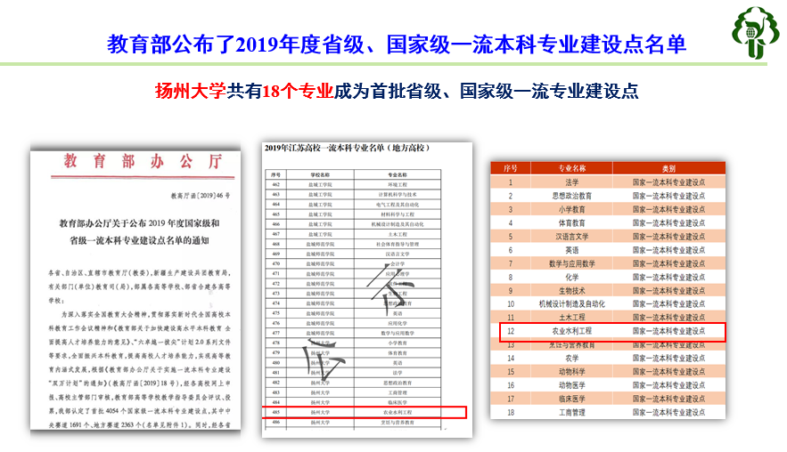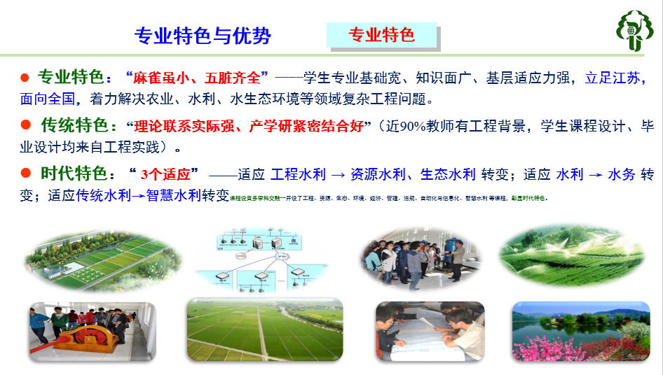 【寄语】扬州,因水而兴;扬大,因水而盛。在长江与大运河交汇的沃土上,农水莘莘学子将触摸农业水利的“硬核科技”:从智能灌溉系统到数字孪生流域,从生态护坡新材料到碳中和高标准农田设计,课堂连接着实验室、试验田和省级工程中心。你们会走进南水北调东线源头,解密“一滴水的千里征程”;深入里下河粮仓,用物联网感知土壤的“呼吸”;站在乡村振兴一线,用无人机为万亩良田编织“水网经络”。作为国家一流本科专业建设点,我们以“治水兴农”为使命,邀你共同书写“水润万物、利泽民生”的时代答卷!让我们以水为媒,以农为基,在扬大这片沃土上,成长为新时代的“大禹传人”!
