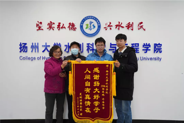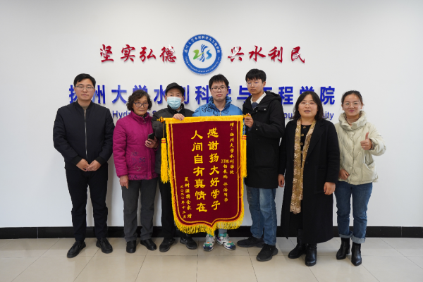 12月23日,两名老人将一面特别的锦旗送到了扬州大学水利科学与工程学院。辅导员老师们略显诧异地接过写有“感谢扬大好学子,人间自有真情在”的红色锦旗。听两位老人细细一说,学院这才知道两位同学“默默地”做了件好事。