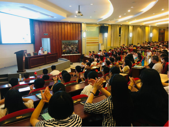 刘老师首先简要进行了自我介绍,之后他围绕儿时生活、从军生活、高校工作等方面向大家分享了14个亲身经历的故事,每个故事都蕴含着人生的道理。同学们惊叹于刘老师小时候经历的苦难、从军中展现出来的英勇爱国的情怀、在高校工作中无私奉献的大爱,对刘老师由衷敬佩。激情洋溢的报告赢得了现场同学们发自肺腑的阵阵掌声和欢呼声。最后,刘老师对新生们提出了五点希望,希望新生们不忘初心、做一个有理想有梦想的人、做一个敢于担当干实事的人、做一个品德高尚的人、做一个有学问的人。