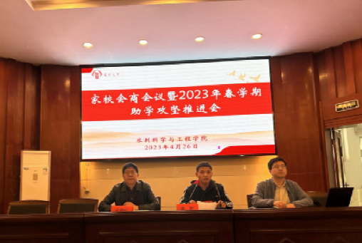 4月26日下午,我院在水利楼报告厅召开家校会商会议暨2023年春学期助学攻坚推进会,会议以线上线下相结合形式进行。党委副书记张俊桂出席会议,全体辅导员,被帮扶学生及其班主任、家长和助学攻坚帮扶人参会,团委书记李新主持会议。