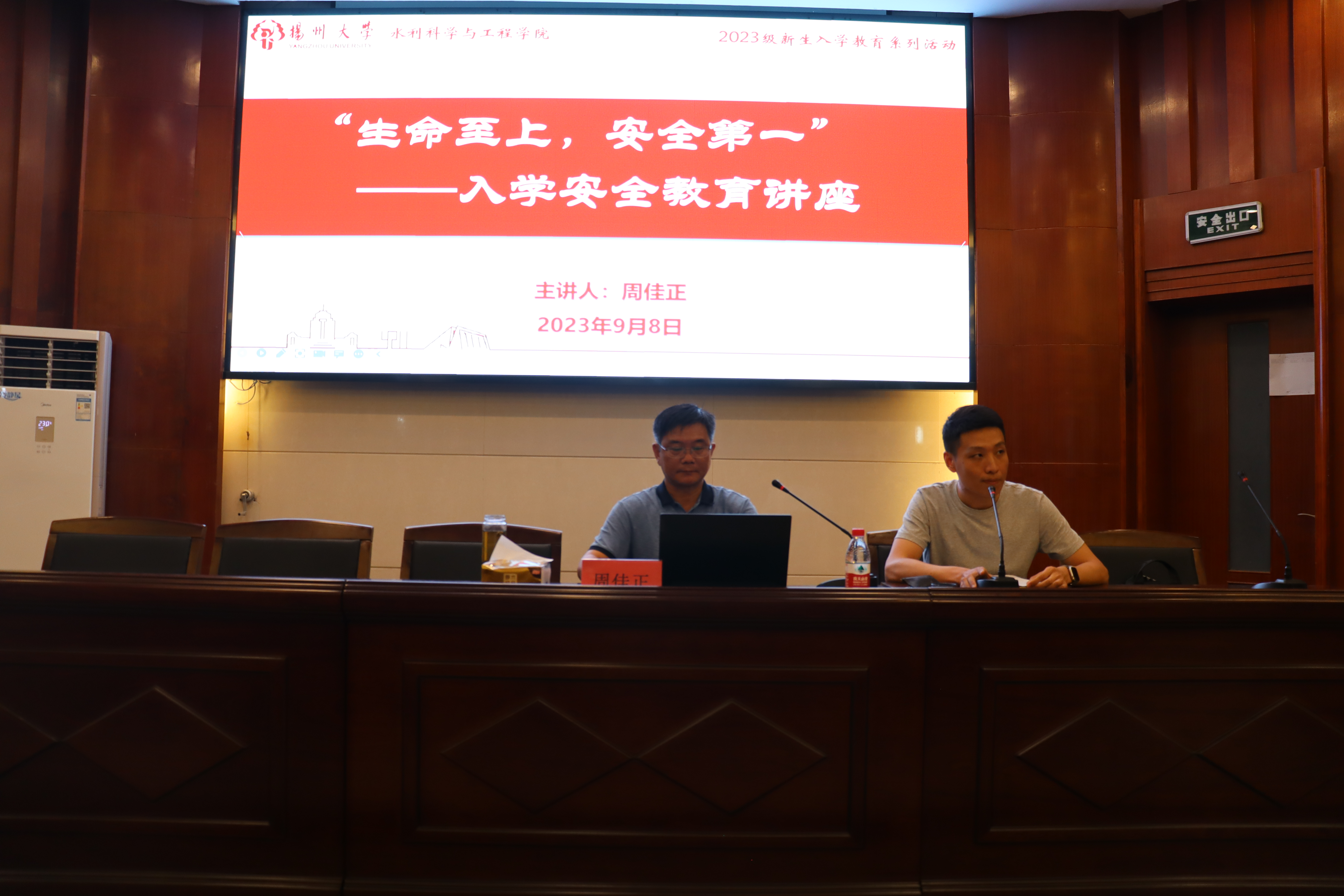 为进一步加强我院2023级新生的安全防范意识,提高大学生应对危机事件的能力。9月8日晚,我院邀请校党委保卫部(处)副部长周佳正在水利楼一楼报告厅举办主题为“生命至上,安全第一”新生入学安全教育专题讲座。我院全体2023级新生参加,讲座由辅导员王梓承主持。