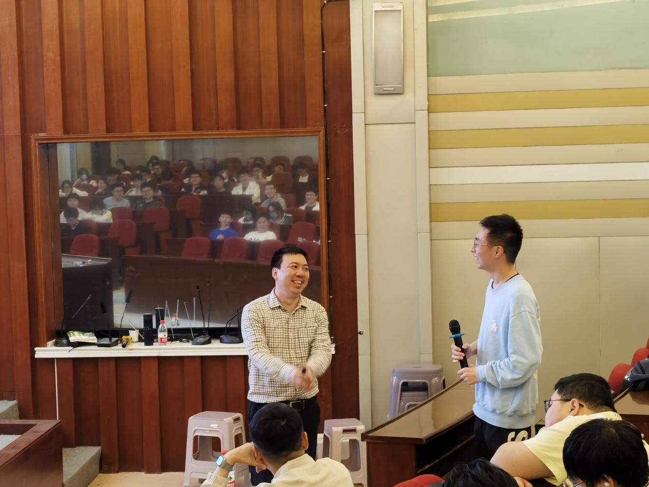 首先,孙老师借助与现场同学们生动且幽默的互动,引出生涯与职业生涯这两个不同概念。通过两大概念的拓展延伸,科普了职业与职业规划的重要性,引导同学们对职业生涯规划体系有了更为全面的认知。其次,孙老师以马云与霍金的人物案例,向同学们介绍了如何应用现代技术为自己的职业规划助力、如何客观地看待技术提供的帮助以及如何拔高自己对当下职业世界的认知。他用古语“履霜坚冰至”的哲理帮助同学们认识到,职业规划是一个长期且持续的过程,通过科学有效的职业生涯规划能够更好地明确自己的兴趣、技能和价值观,从而制定出符合自身实际情况的个人职业目标和未来发展路径。最后,孙老师向同学们推荐了有关职业生涯规划的书籍,回答了同学们关于职业生涯规划中的一些困惑和问题,并希望大家能够持续深耕自身职业生涯规划的学习和探索,不断提高自身的核心竞争力。
