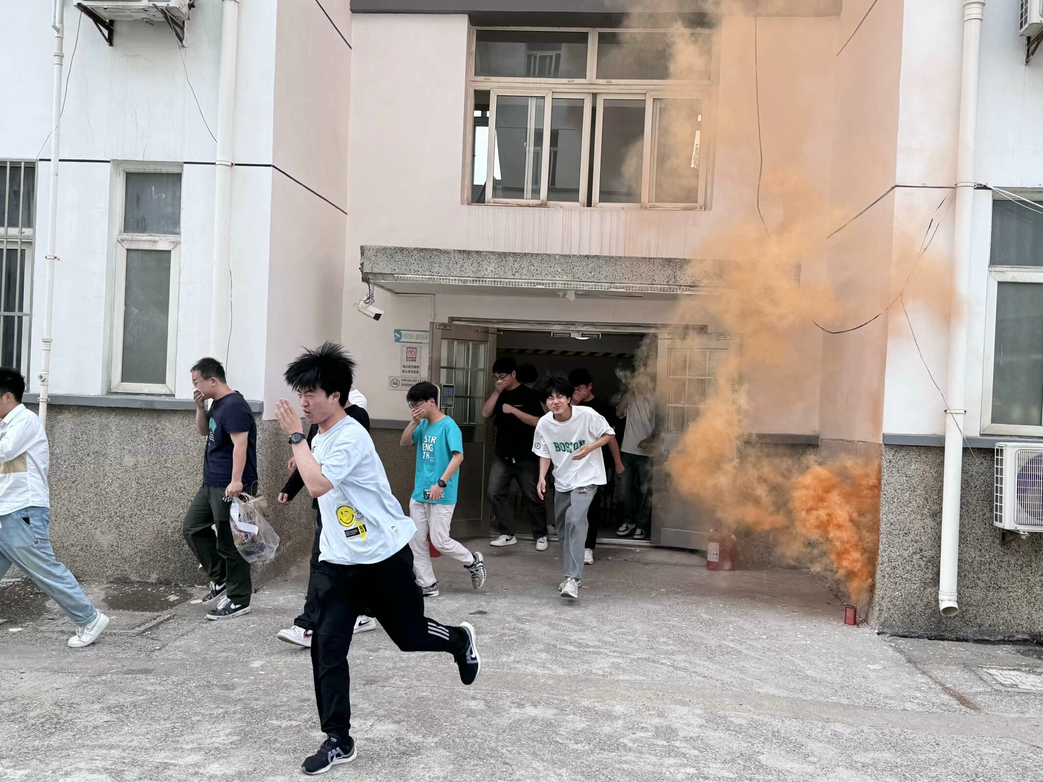 保卫部(处)消防科老师系统讲解了遇到火灾时如何自救,如何正确使用灭火器灭火等消防安全知识以及疏散逃生演练过程中的注意事项。演练开始,现场模拟宿舍发生火灾时烟雾弥漫的状态,随着警报响起,同学们迅速按照疏散指示,快速有序地从宿舍楼内向指定的安全地带疏散。学生们逃生到指定地点后,以班级为单位自觉排成方队并清点人数,整个演练过程做到安全、有序。
