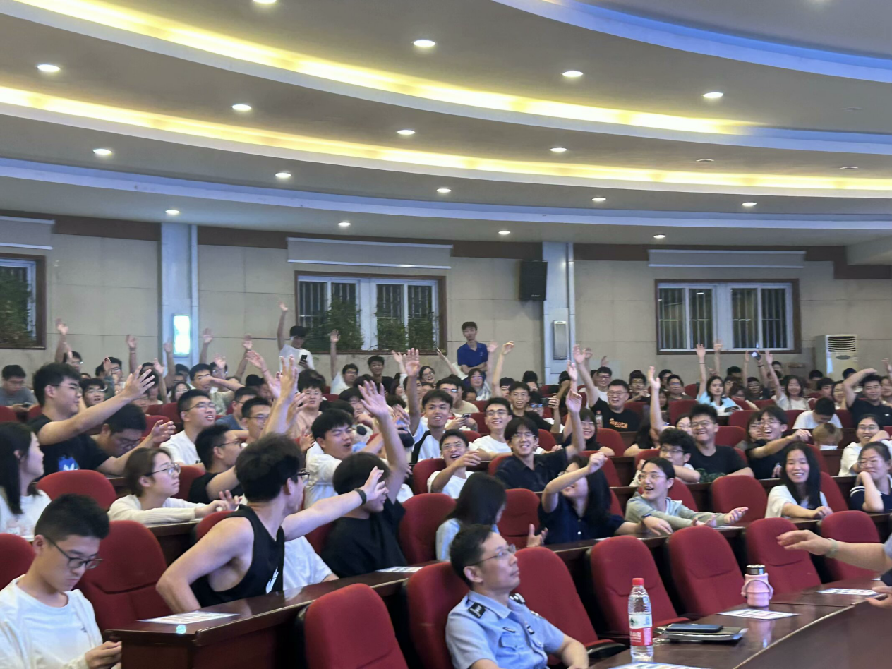沈长青以各高校的实际案例为引,论述了如何警惕诈骗陷阱、防范网络谣言、维护校园安全稳定以及培养文明上网习惯四个方面的内容。特别强调要警惕诈骗陷阱,同学们应通过学校官方渠道了解与校园生活有关的相关信息。通过列举高校中出现过的实际案例,指出学生反诈教育工作的重要性,给在场同学敲响了安全的警钟。除此之外,为了让同学们能够更准确更快捷的辨认并且积极应对防范网络诈骗,沈警官组织了反诈小问答的活动并逐一解释以提高同学们的警惕性。