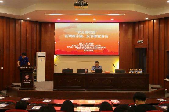 为进一步加强我院2024级新生的安全防范意识,提高大学生应对危机事件的能力。9月8日晚7:00,我院邀请扬州市公安局开发区公安分局扬子津派出所副所长沈长青警官在水利楼一楼报告厅举办主题为“安全进校园进校园”防网络诈骗、防邪教宣讲会。我院全体2024级新生参加会议,会议由辅导员莫伟主持。