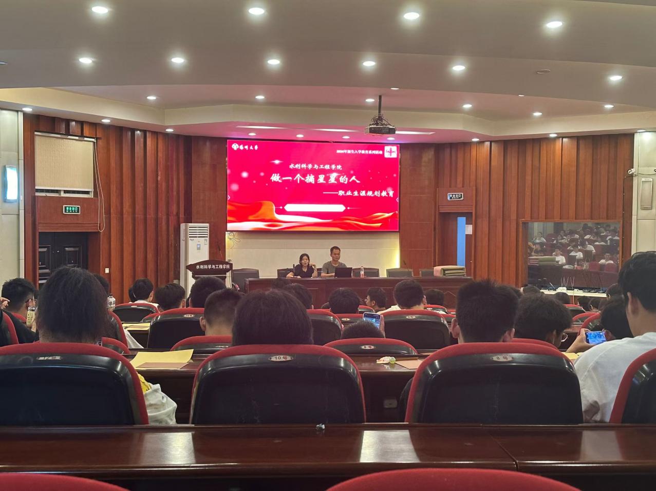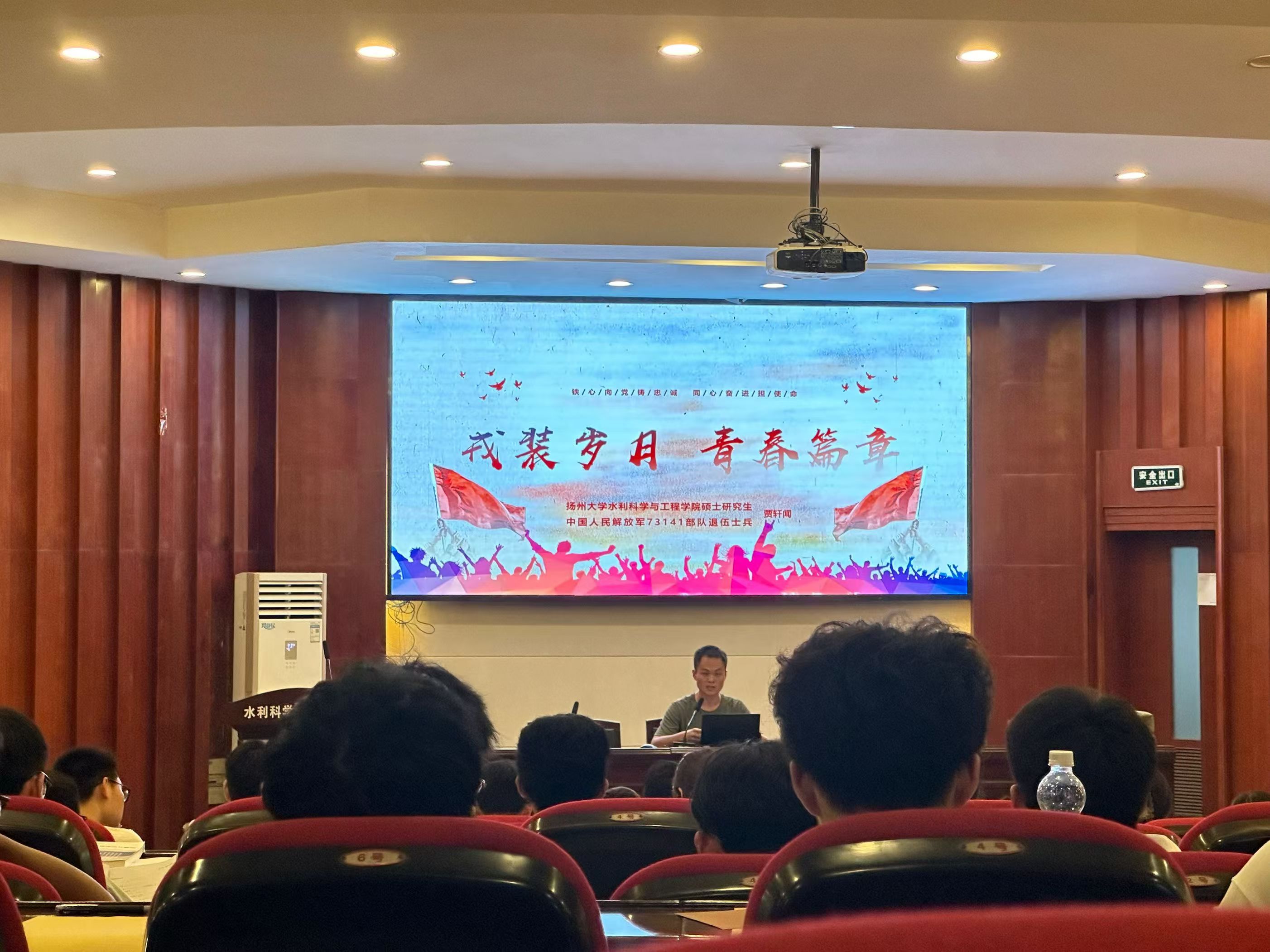 秋月明净,桂香浮动。9月17日晚,中秋佳节之际,水利科学与工程学院全体大一新生齐聚一堂,在水利楼报告厅开展“戎装岁月,青春篇章”主题分享活动。研究生新生贾轩闻为主讲嘉宾,全体2024级新生参与活动,活动由新生辅导员杨蝉溪主持。