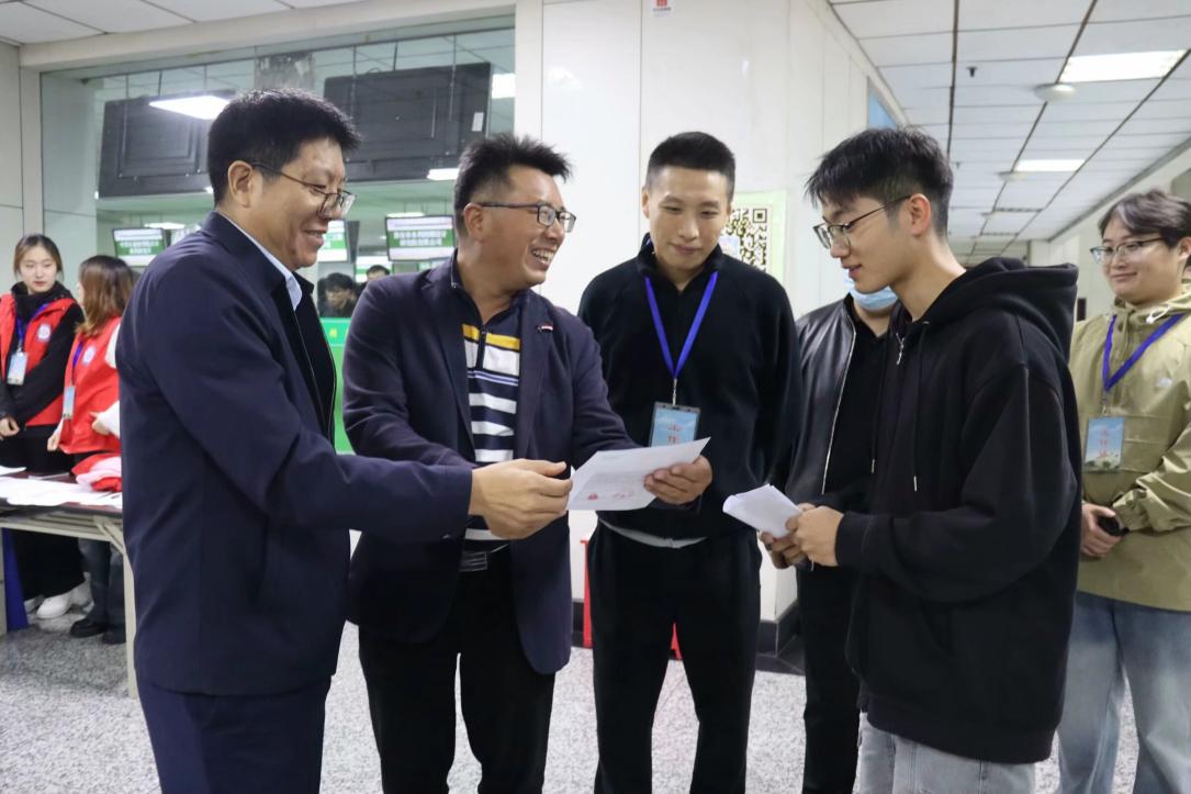 院党委书记王建军,院党委副书记张俊桂走进现场,详细了解企业发展和人才需求等相关情况,向用人单位介绍学院人才培养特色,并现场为在求职就业方面有疑惑的毕业生答疑解惑,助力毕业生精准就业和企业双向选择、实现共赢。