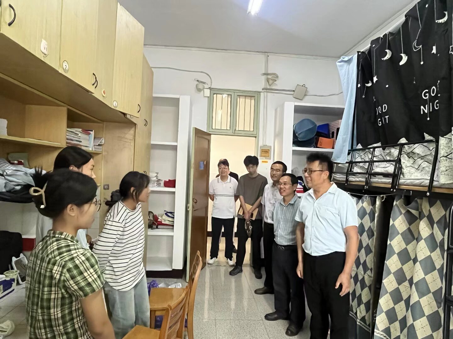 开学典礼前,王建军书记,成立院长,蒋新跃副书记到新生宿舍看望2025级新同学,走访过程中,各位领导老师亲切询问新生们的家乡、入学感受、生活适应情况,特别提醒大家要注意宿舍安全,共同营造一个和谐、安全、文明的学习生活环境。