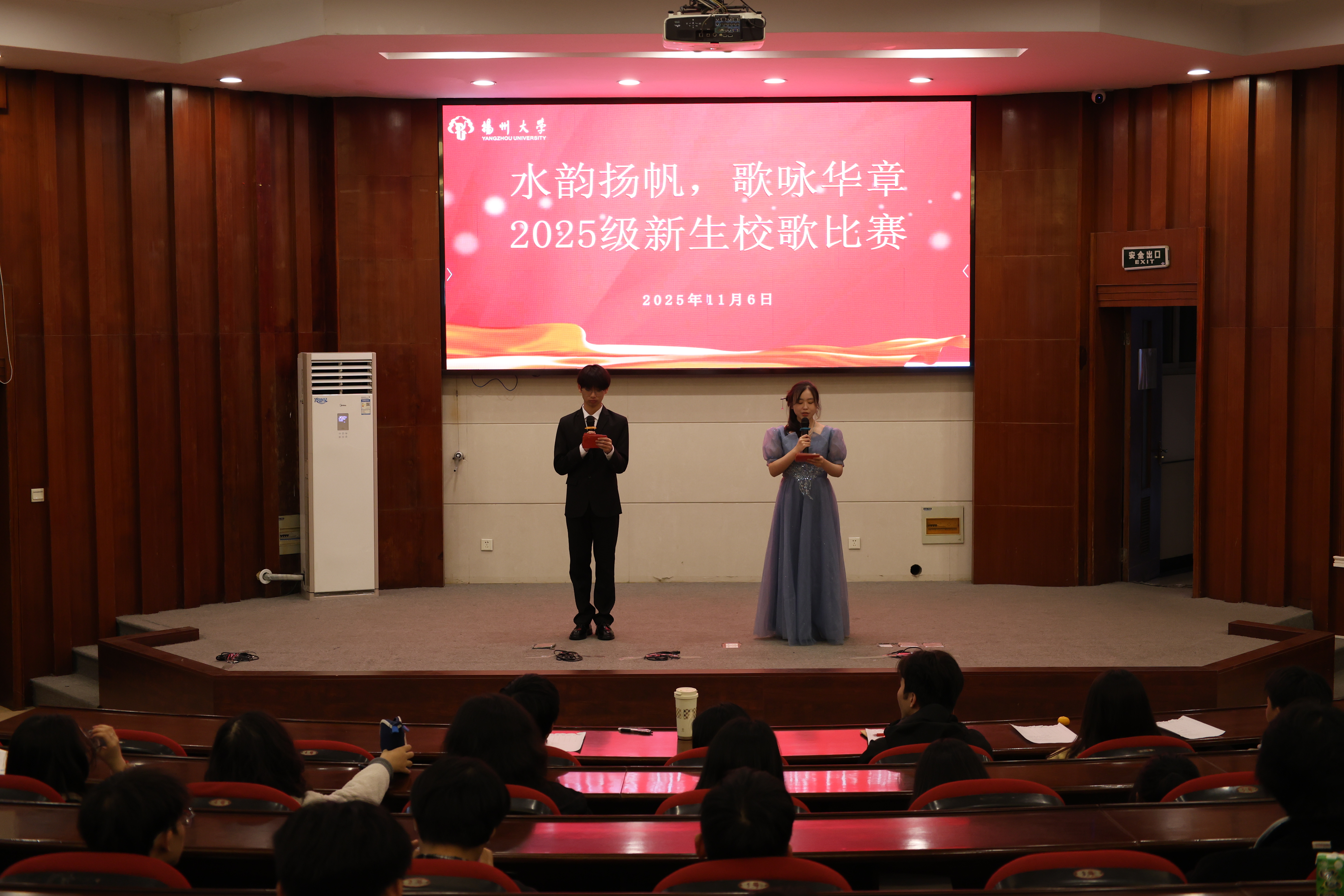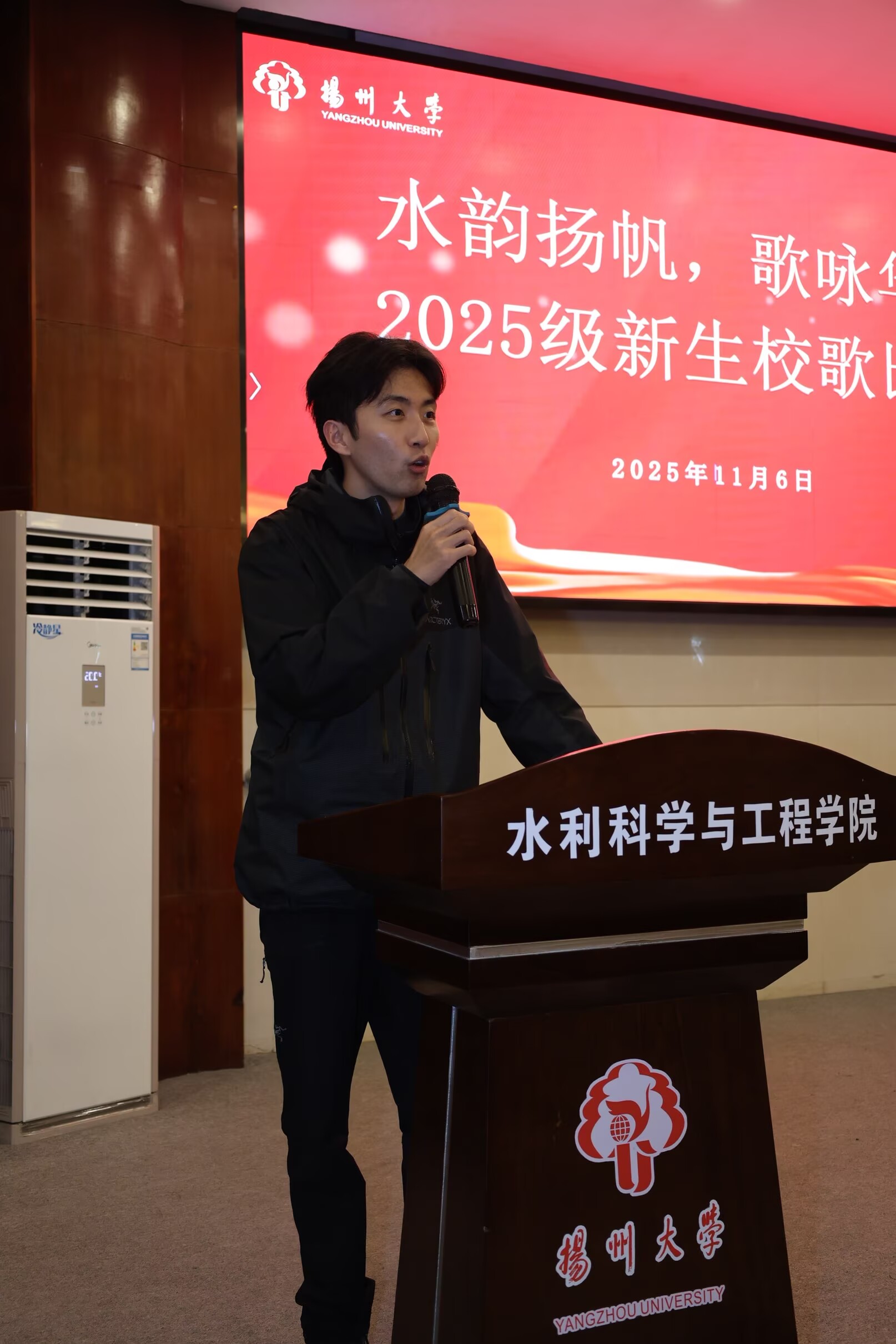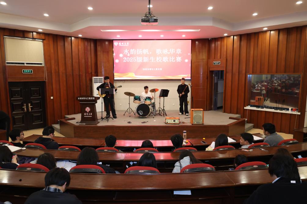 为增强新生对学校和学院的归属感,激发新生爱国爱校的崇高情怀,营造团结和谐的班级文化氛围。11月6日晚,我院在水利楼一楼报告厅举办“水韵扬帆 歌咏华章”2025级学生校歌合唱比赛。活动由水工2501班王锦岚,水工2503班袁梓彤同学主持,全体2025级新生参与比赛。