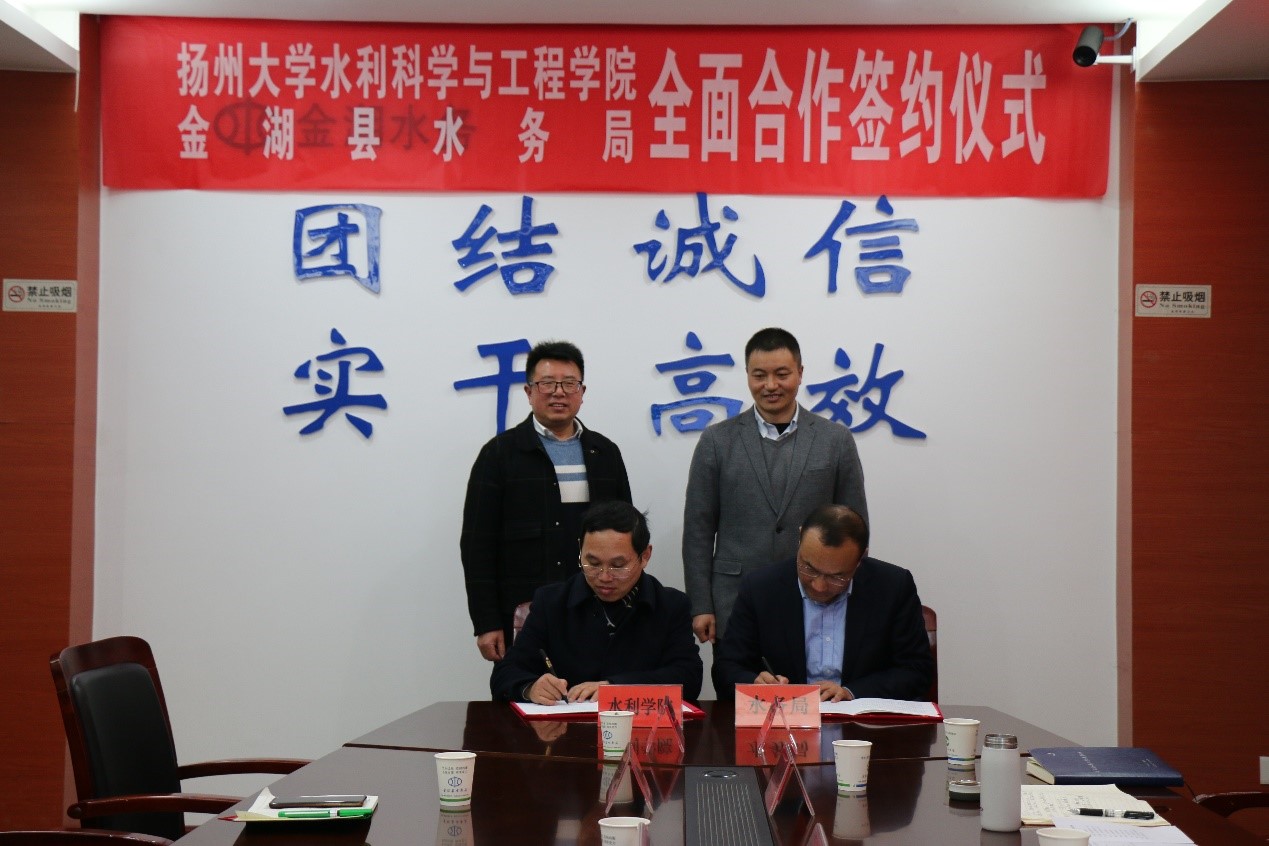 2月27日下午,学院与金湖县水务局举行全面合作协议签约仪式。金湖县副县长顾海芸,金湖县科技镇长团团长、副县长丁海峰,院党委书记王建军,院长成立,副院长张海翎,金湖县水务局党委书记、局长李卫兵和全体局领导出席活动。成立和李卫兵代表双方签约。