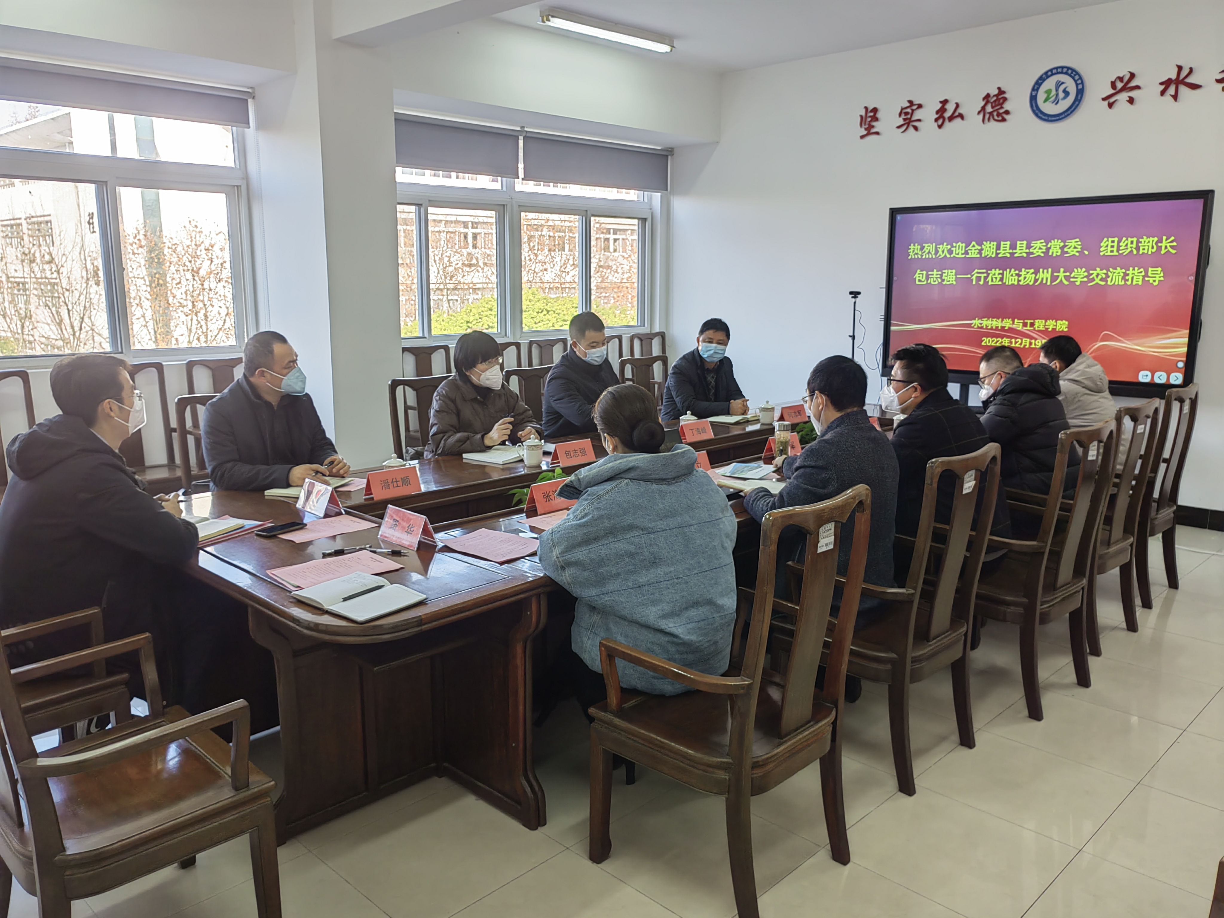 12月19日下午,金湖县委常委、组织部部长包志强,副县长、科技镇长团团长丁海峰,县人才管理发展中心主任潘仕顺,县水务局副局长何志军一行来我院调研交流。在扬院领导,校党委组织部副处级组织员邵宁,金湖县科技镇长团团员唐双成老师参加了交流活动。