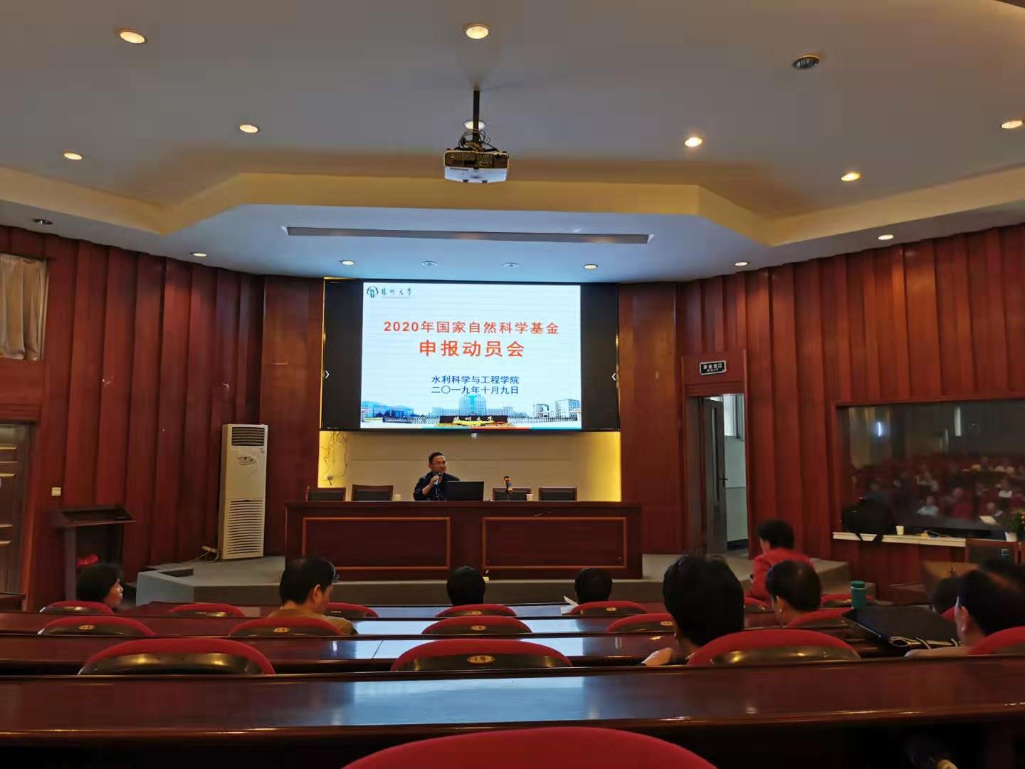 10月9日下午,学院在水利楼一楼报告厅举行了2020年度国家基金项目申报动员会,成立副院长为申报动员做了专题报告,全体教职工参加。