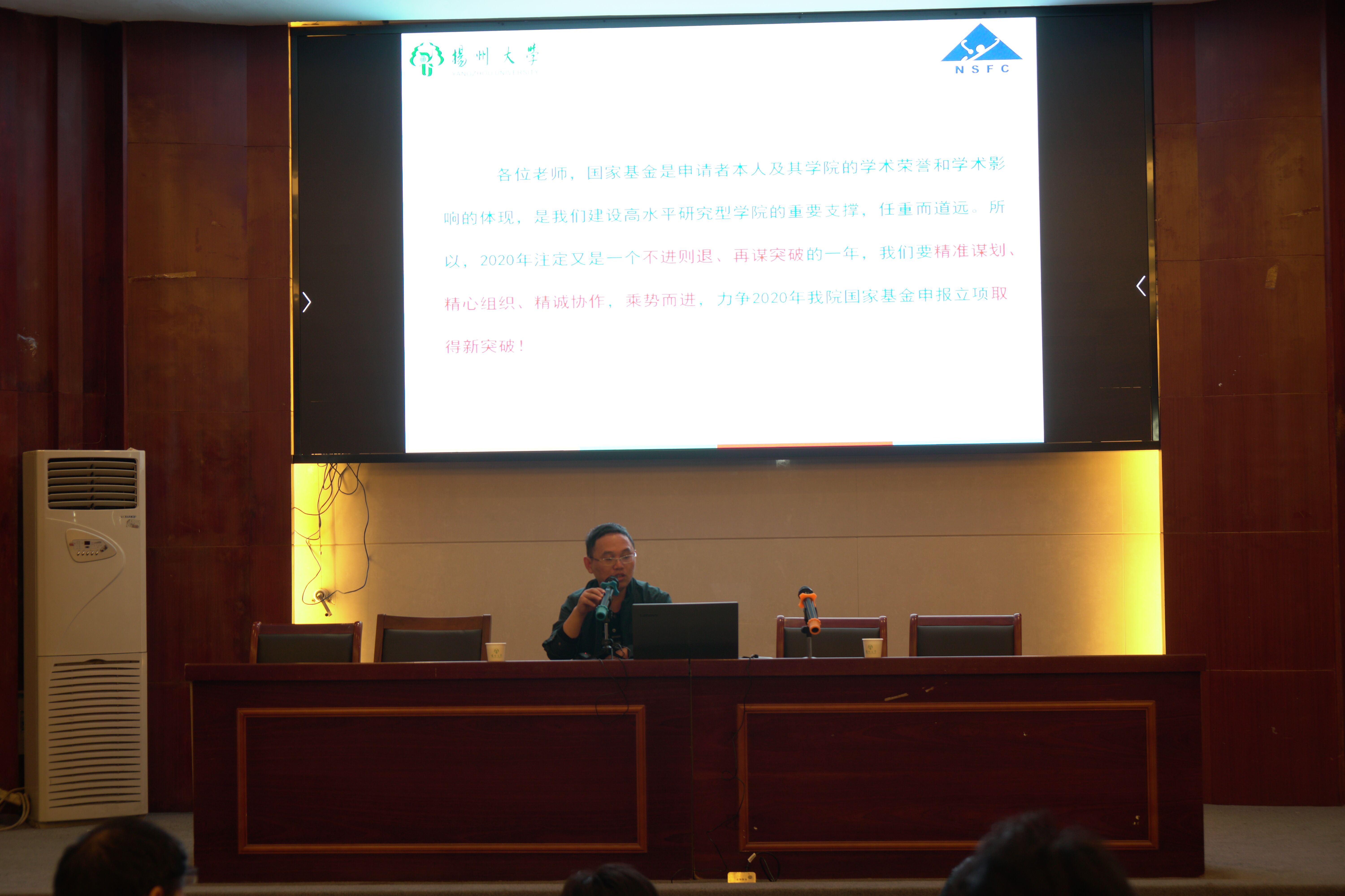 成立副院长介绍了国家基金资助体系,回顾了我校2019年国家自然科学基金申报与立项情况,并进行了多维度分析,重点对2020年度的申报工作进行了部署。他强调2020年国家基金申报组织工作的重点分别是增量提质和提质增亮,不仅要提高申报书质量、提高资助率,更要在优青、重点及国际合作等项目力求新突破。学院将精准谋划、精心组织、精诚协作,乘势而进,力争2020年我院国家基金申报立项取得新突破!