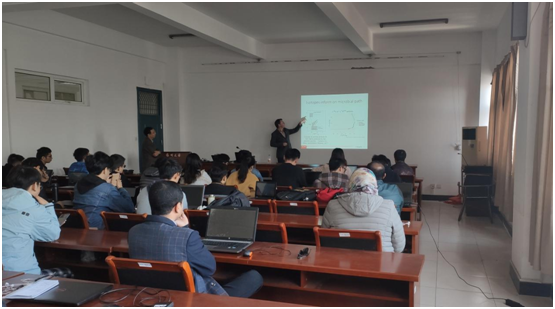 François副教授通过为期四天的报告,分别向大家介绍了城市及农业水环境中生物反应器工作机理,并对生物反应器实验系统中的数据采集、实验设计、水质分析等不确定性研究做了非常详细的讲述,系统的介绍了水质演变规律和应对数据分析中不确定性解决方式,并结合R语言设计,深入浅出的剖析了不同数据处理方式对水质数据精度分析的显著差异分析,为学生提供了一系列数据优化分析方法。在提问环节不少老师及学生都针对各自感兴趣的问题与François副教授进行了精彩的讨论。François副教授以非常生动有趣的教学风格,给大家讲述相关研究理论,带入性很强,授课内容环环相扣,授课过程不仅引起广大研究生的学习兴趣,同时也给不少本科生的留下了深刻的印象。会后农业水土环境实验室负责人罗纨教授、贾忠华教授邀请François副教授参观了实验室,François副教授对实验室的研究领域和实验基地的设计大家赞赏,同时提出了很多宝贵的建议。学术报告的成功举办,拓宽了师生的国际视野,加强了与国际顶尖学者的交流,使广大师生受益匪浅。