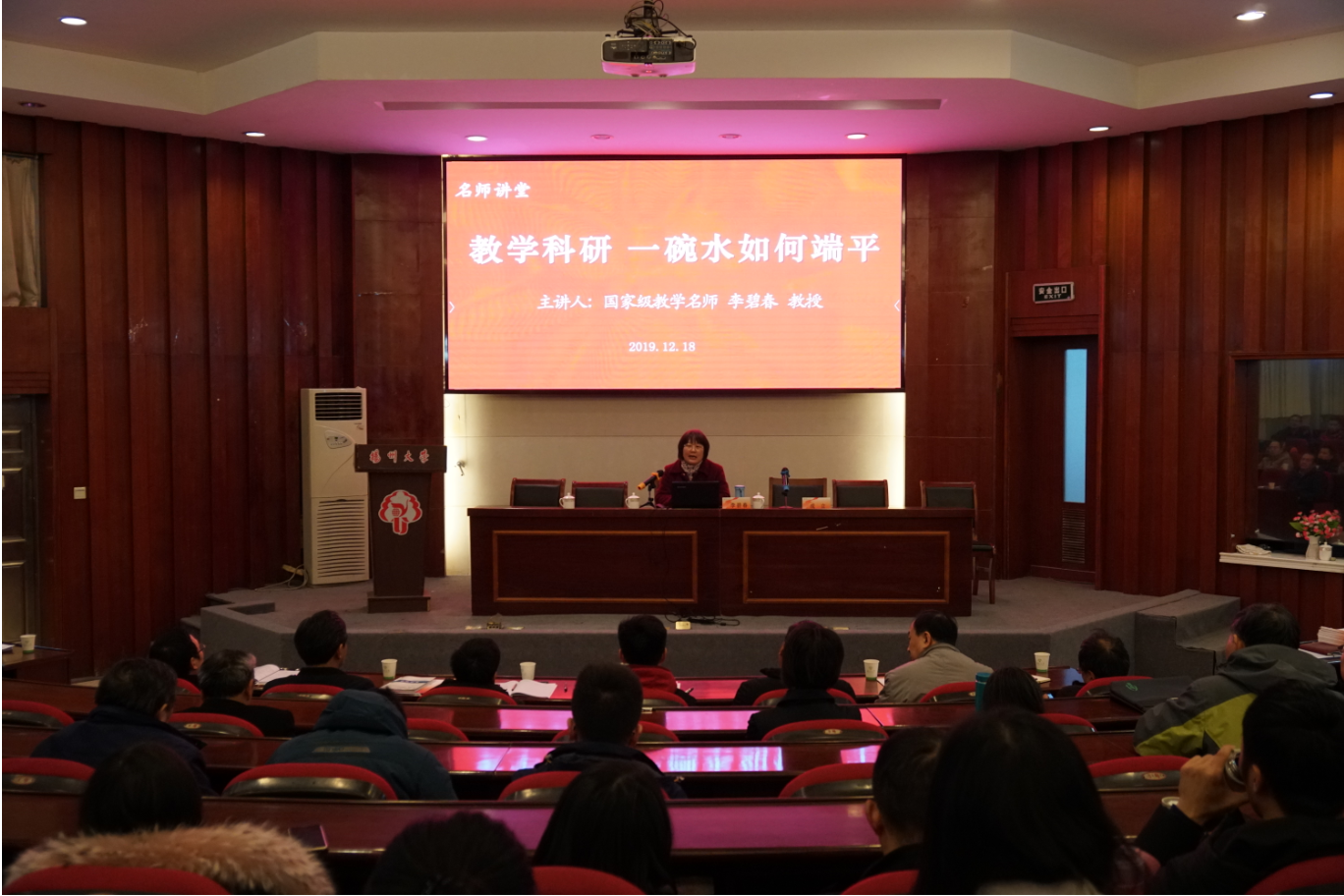 活动的第二阶段,邀请国家级教学名师动物科学与技术学院李碧春教授走进我院名师大讲堂,作《教学与科研,一碗水如何端平》专题报告,分享教学和科研心得。李教授坚持教学和科研两手抓,两不误,每年为本、硕、博士生授课。“高教大计,本科为本,本科不牢,地动山摇”,李教授强调本科基础教育的重要性,她认为本科教育改革已经到了“箭在弦上,不得不发”的地步,全体高校教师应该转变教学态度,更加认真地从事本科教学。李教授深入分析了教学和科研关系失衡的原因,结合自己在教学和科研理论与实践中的经验体会提出许多建设性建议。她强调,导师要做好研究生教育管理工作,要本着以学生为本的理念,从细节着手关心关爱学生的成长成才,做到道德教育和知识教育相结合。
