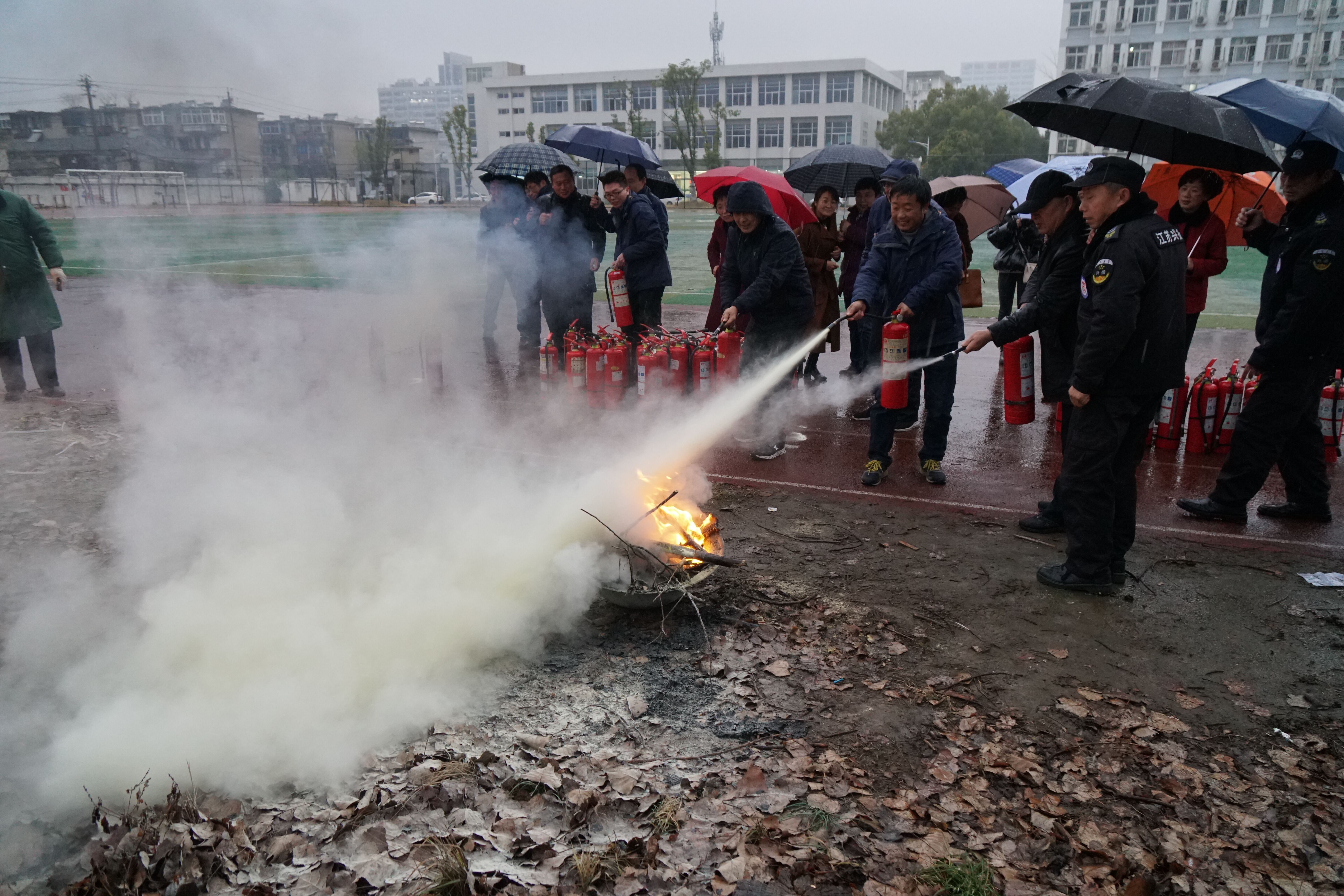 周济人副院长强调冬季消防安全工作的重要性,安全工作是学院工作的重中之重,每位老师都要在思想和行动上高度重视,时刻绷紧消防安全这根弦不放松。校保卫处杭天龙科长在会上做了“火灾危害与消防工作”的专题报告,着重从校园家庭住宅火灾防控、实验室消防安全等方面进行了专业讲解,帮助与会的老师更多地了解和掌握冬季消防安全的常识和技巧。会后,参会老师来到江阳路南校区南操场进行了灭火器使用操作演练,每位老师都在保卫处工作人员的指导下,现场规范使用灭火器进行了扑灭火灾的实际操作训练。