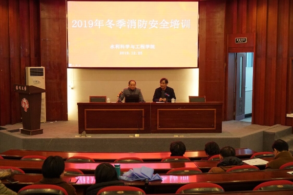 12月25日,学院在江阳路南校区水利楼报告厅举行2019年冬季消防安全培训。会议由周济人副院长主持,全院教职工参加。