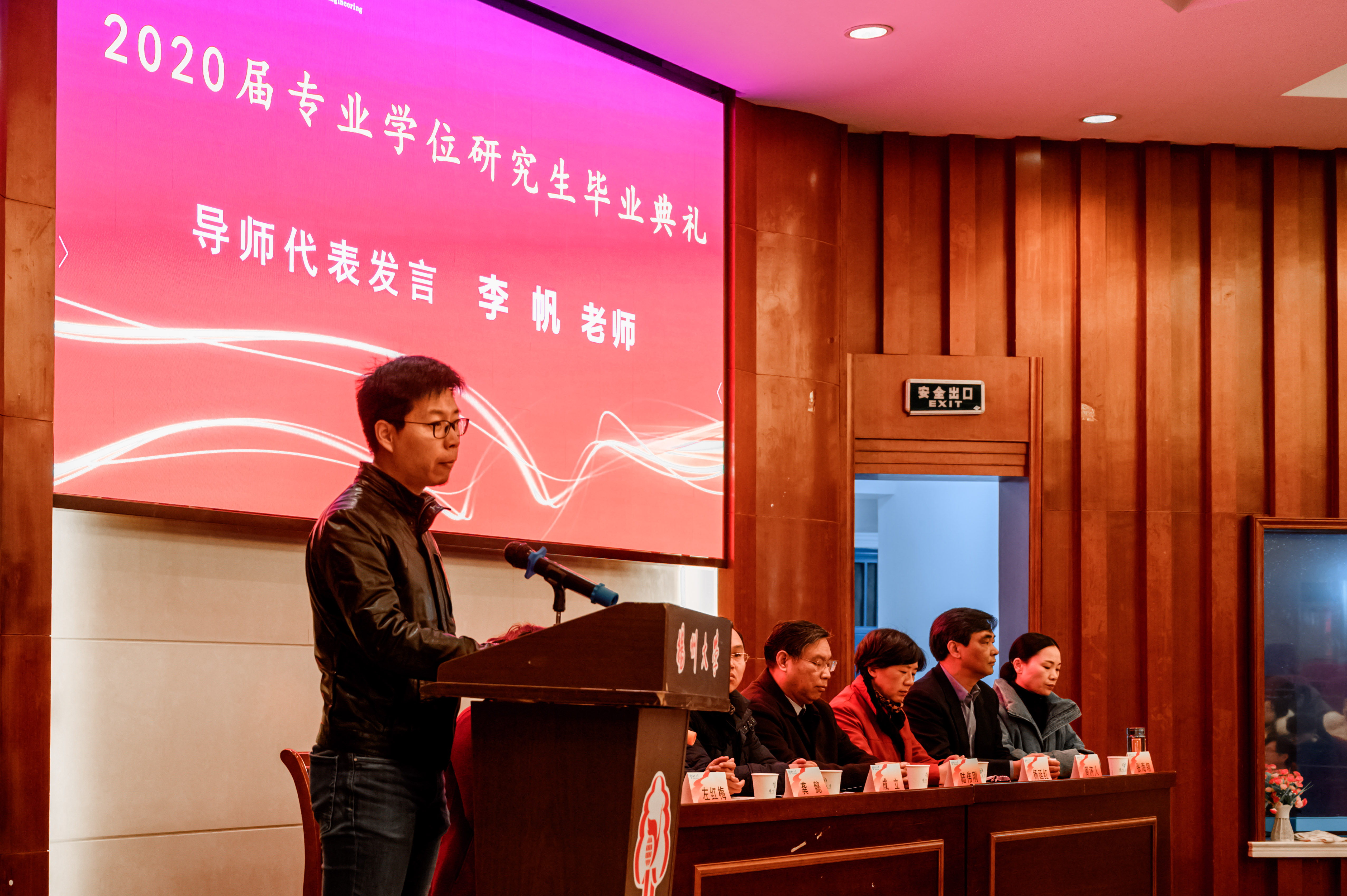 导师代表、农水及水文与水资源系主任李帆老师向全体毕业生表示最衷心的祝贺,勉励毕业生:一是要学会享受挫折和困难,艰难困苦,玉汝于成;二是要做一个有道德的好人,保持宽厚平和之心,虚心从善,不断完善人生的境界;三是要敬畏规则,遵守社会公德、职业道德。希望毕业生去营造和推动世界,让世界因他们的坚持而变得更美好!