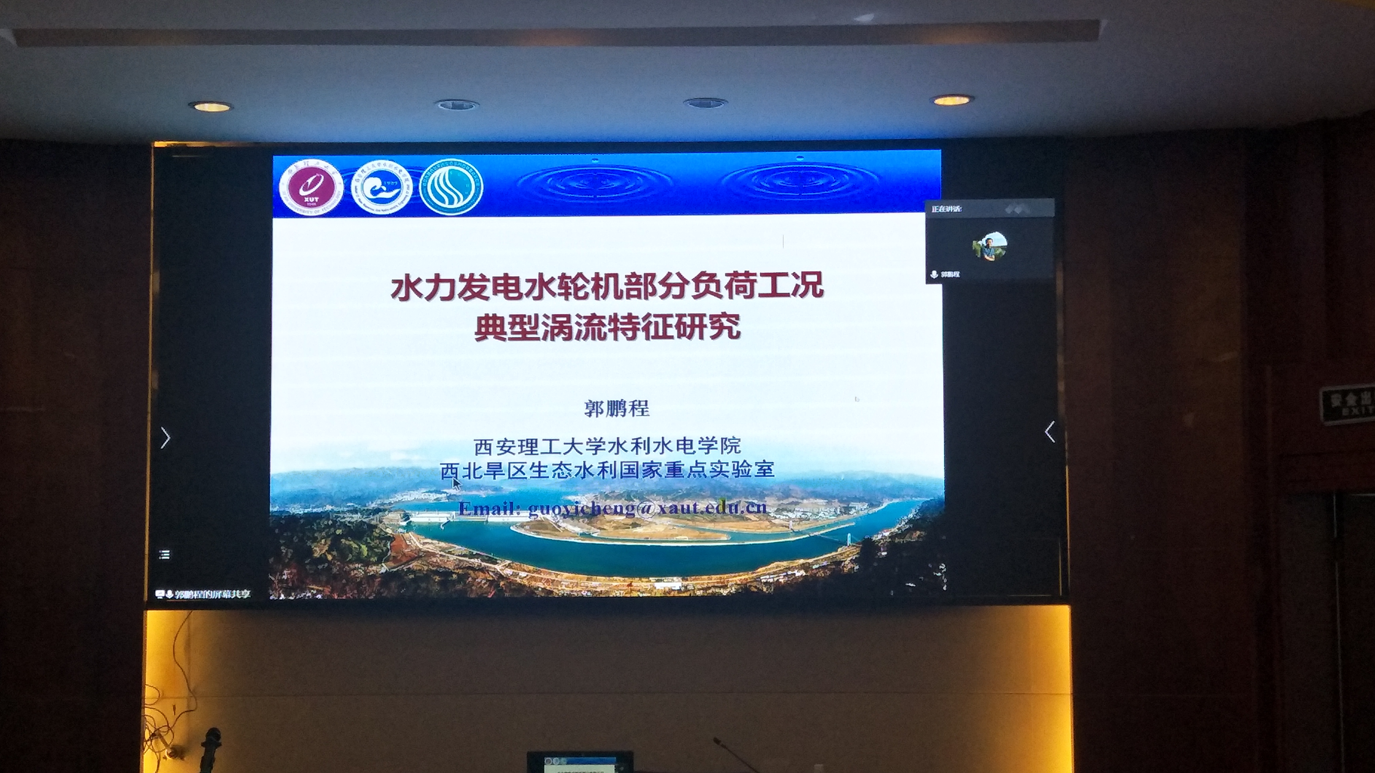 下午3点,西安理工大学郭鹏程教授受邀作《水力发电水轮机部分负荷工况典型涡流特性研究》的学术报告。郭教授指出,西安理工大学坐落于国家西部地区,是中国的水力发电基地,所以其团队研究的主要侧重点是大型水轮机发电领域。郭教授主要从课题背景、水轮机模型试验及数值模拟方法、涡识别及其时空演化特性等七个方面展开了专题汇报。郭教授指出,水轮机是水力发电站的“心脏”,在所有的已装机水轮机中,混流式水轮机占总装机容量的60%以上,并且相对于轴流式水轮机等,混流式水轮机的装机扬程范围更广,单机容量更大,这也是本次讲课的重点内容。