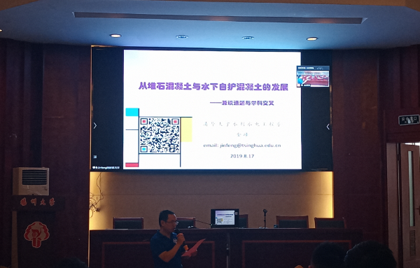 8月17日,江苏省研究生“南水北调跨流域调水工程水安全”暑期学校暨大学生夏令营活动第八天的讲座在我院水利楼报告厅举行。清华大学金峰教授受邀在报告厅作《从堆石混凝土与水下自护混凝土的发展兼谈选题与学科交叉》学术汇报。