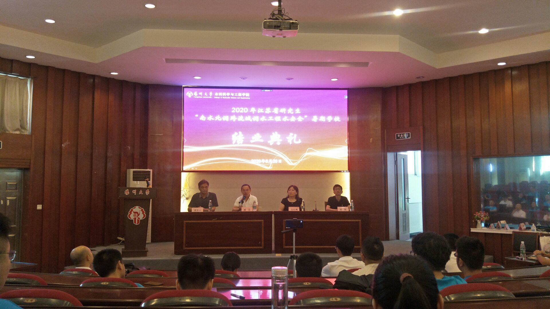 8月20日上午,2020年江苏省研究生“南水北调跨流域调水工程水安全”暑期学校结业典礼于我院水利楼报告厅正式举行。我院副院长成立(主持工作),党委副书记左红梅,副院长周济人,副院长龚懿,以及相关工作组老师出席本次活动。