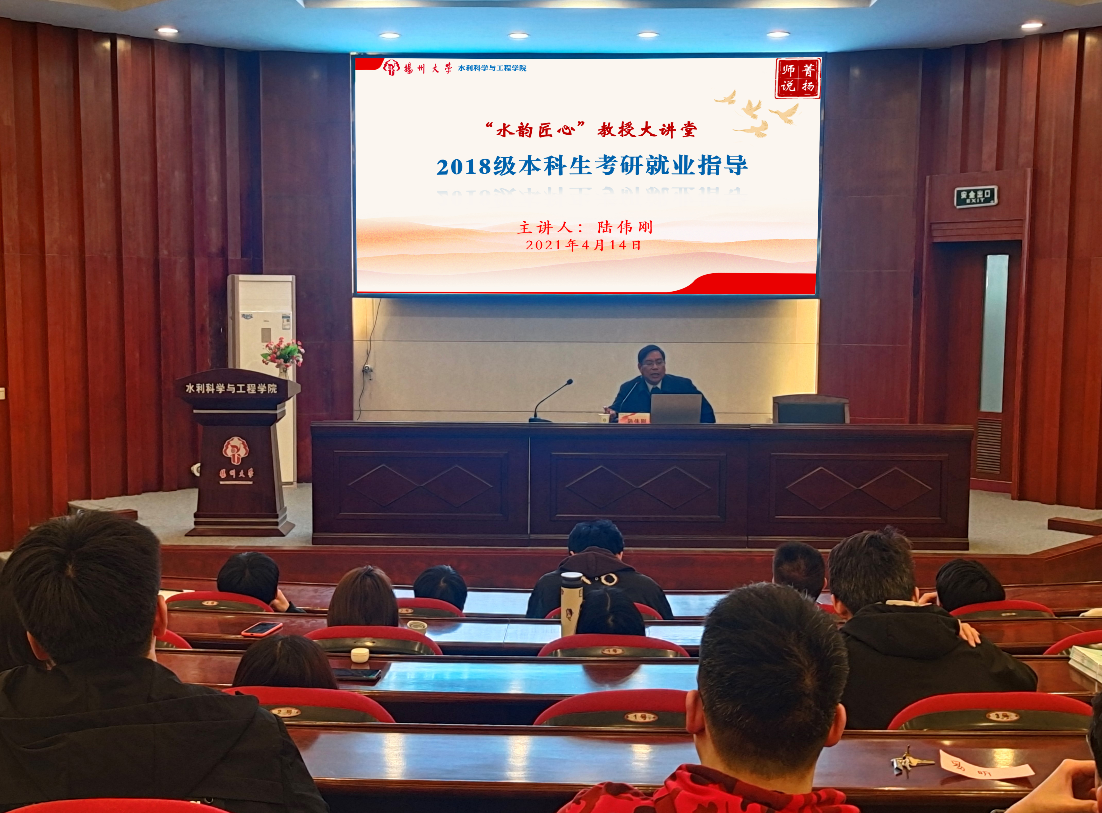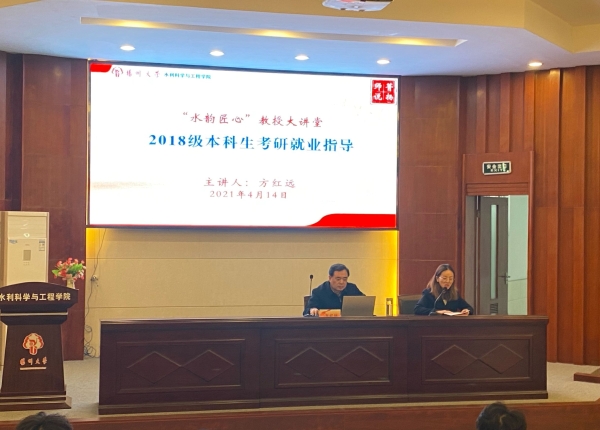 4月14日下午,我院在水利楼报告厅举办“水韵匠心”教授大讲堂--2018级本科生考研就业指导讲座,邀请陆伟刚教授、方红远教授作为主讲嘉宾。