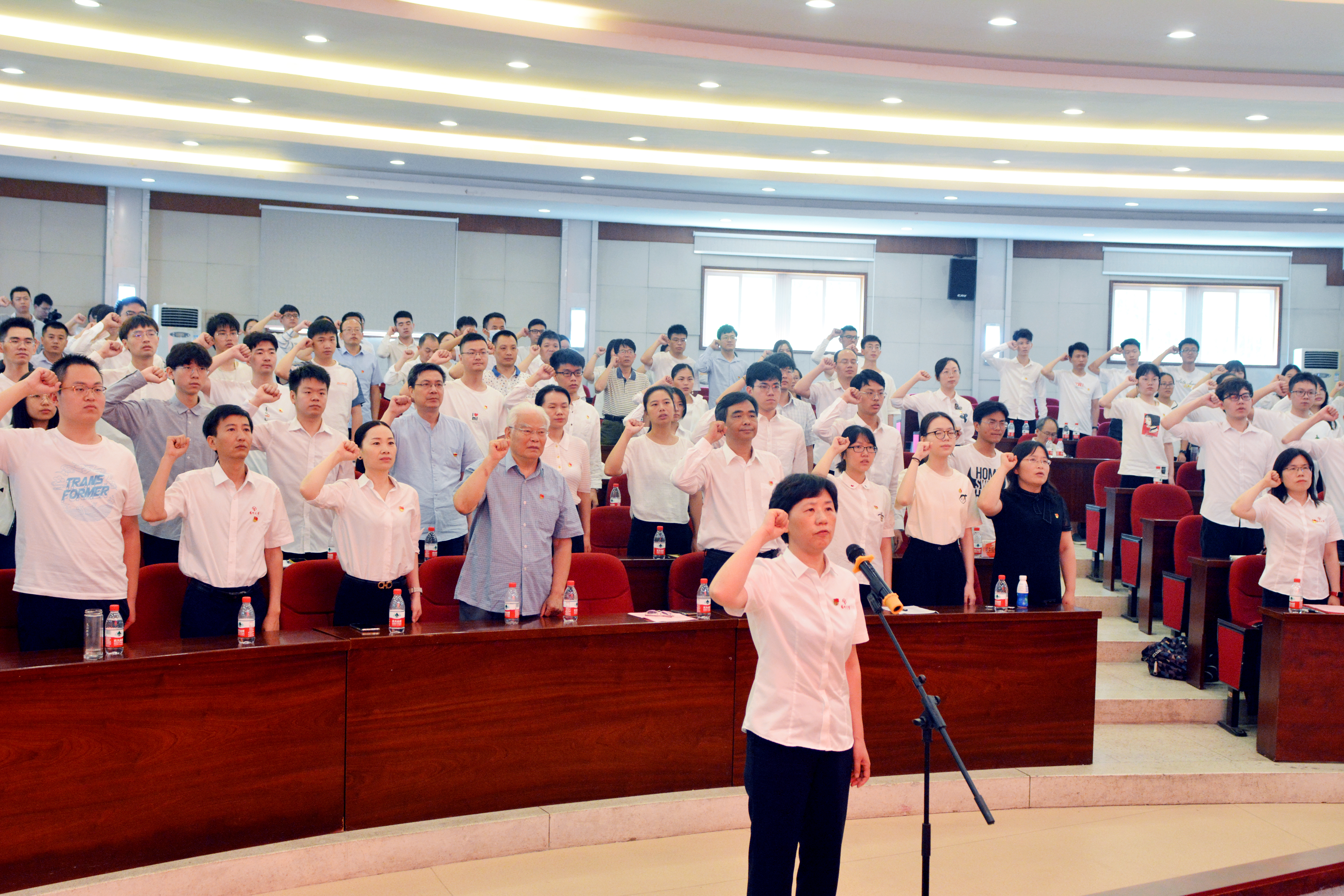 隆重举行党员集体宣誓仪式。院党委书记杨延红领誓,新党员入党宣誓、老党员重温入党誓词。全院党员列队整齐,佩戴党徽,举起右拳,面向党旗,庄严宣誓,一声声铿锵有力的入党誓词在报告厅激昂回荡,表达了对党忠诚、永不叛党的坚定承诺。