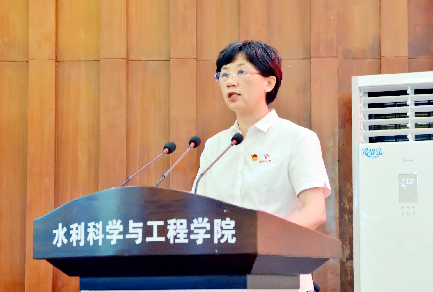 水港系金燕老师代表教师党员发言并庄严表态,将秉承校训、院训精神,弘扬高尚师德,立足本职岗位,争做“四有好老师”,以实际行动兑现入党誓言。水工1701班桑迪同学代表学生党员和新党员发言,表示作为新时代学生党员,要珍惜伟大时代,在担当中历练,在尽责中成长,争做有理想、有人格、有担当、有能力、有道德的“五有”青年。