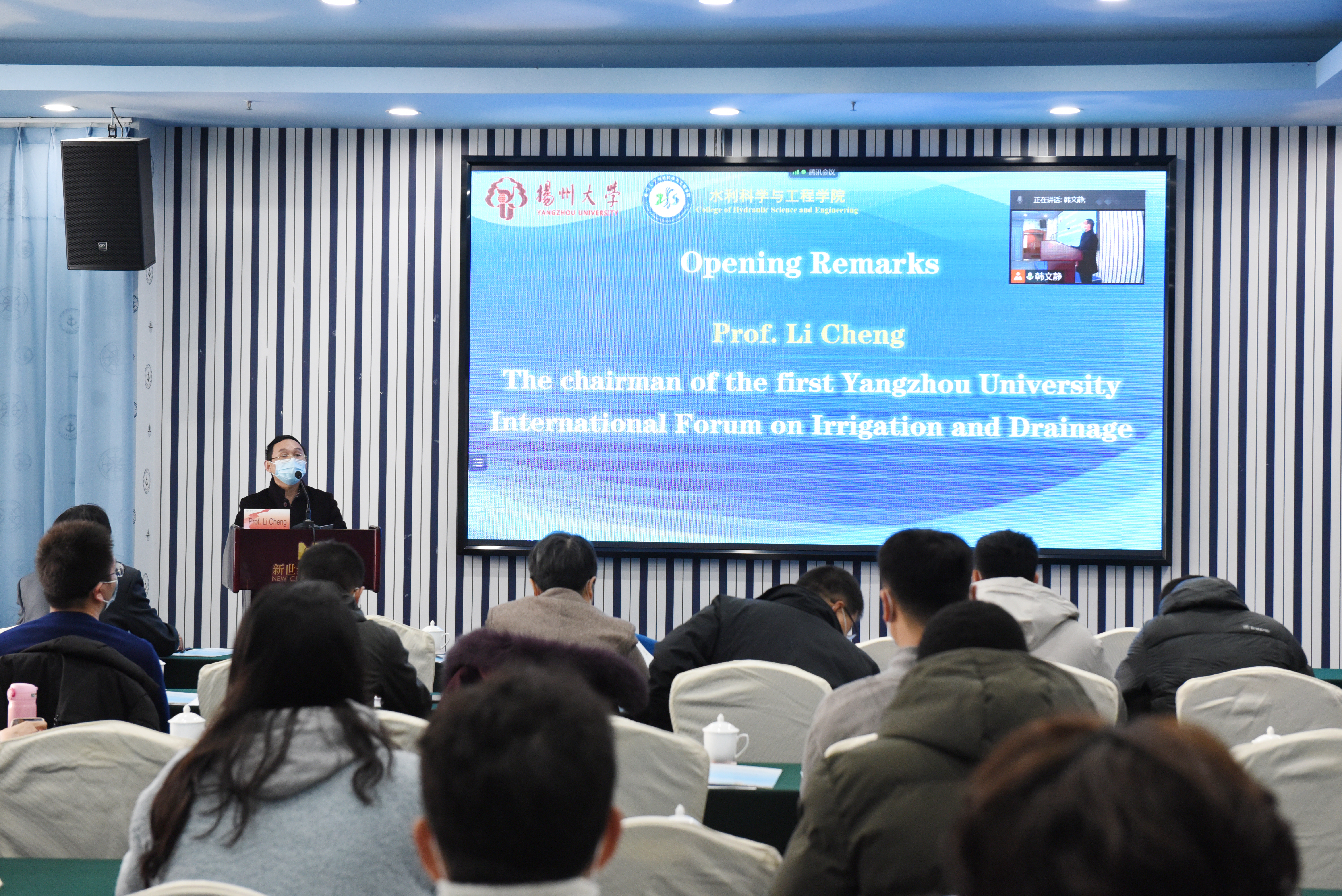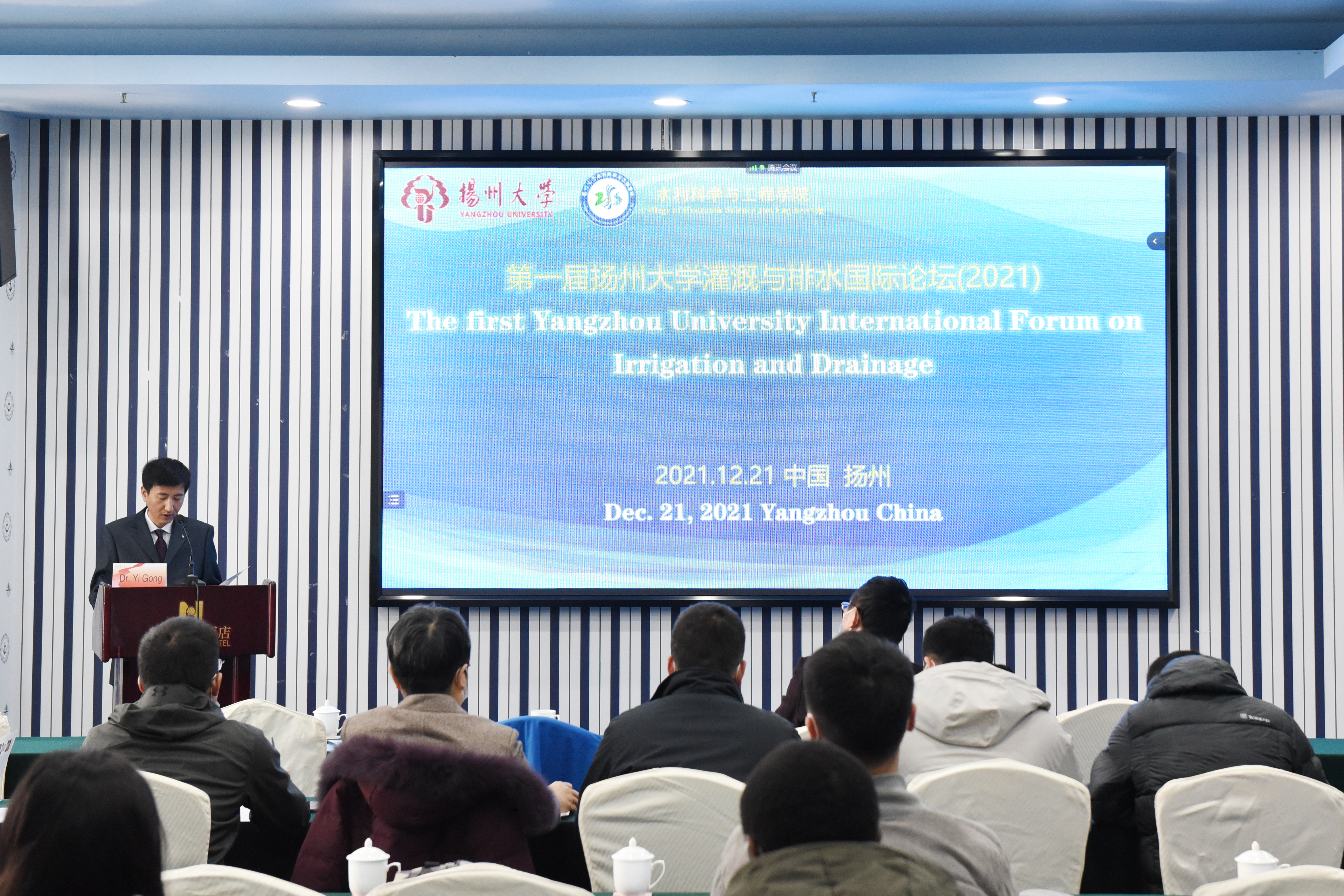 12月21日,由校科技处、国际合作与交流处、水利学院联合主办的第一届扬州大学灌溉与排水国际论坛在新世纪大酒店隆重举行。学院成立副院长致开幕词,现代农村水利研究院龚懿副院长主持论坛。会议采取线下、线上结合的方式进行。