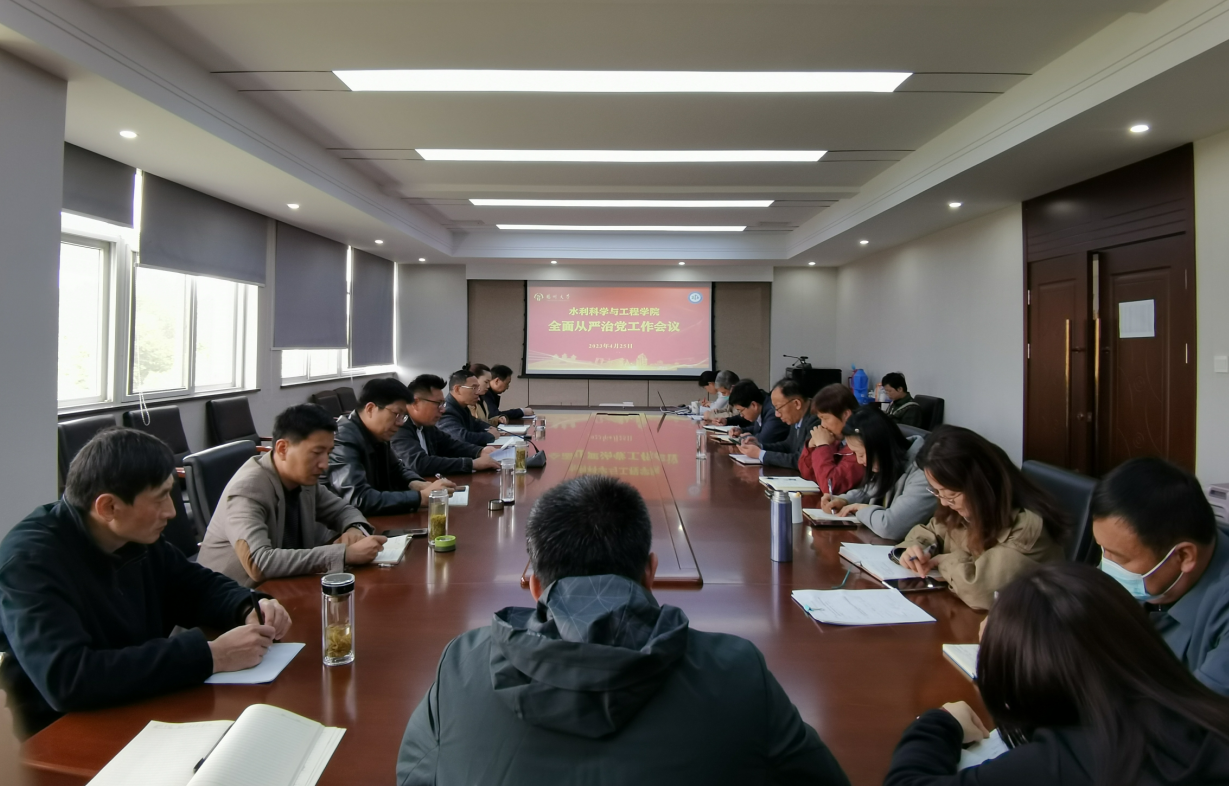 4月25日下午,学院在路南校区水利楼402会议室召开全面从严治党工作会议。院党委书记王建军主持并讲话,全体院领导、党支部正副书记、系正副主任、科级干部参加会议。