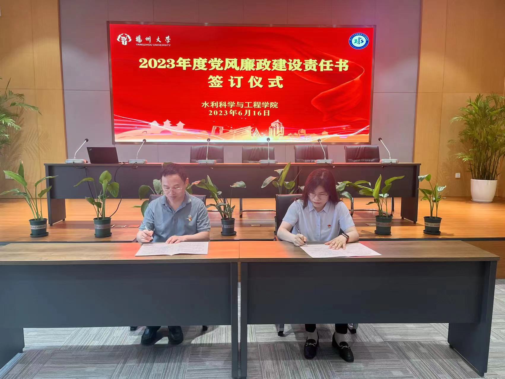 全体参会同志先在水利楼一楼报告厅观看《坚持严的基调不动摇,以零容忍态度惩治腐败》等三个警示教育专题片。观看专题片结束后,全体参会同志前往扬州市警示教育基地,参观警示教育展览,老党员重温入党誓词,新发展党员举行入党宣誓。全体院领导与新到岗的科级干部和新任命的教工党支部、系科负责人签订党风廉政建设责任书。
