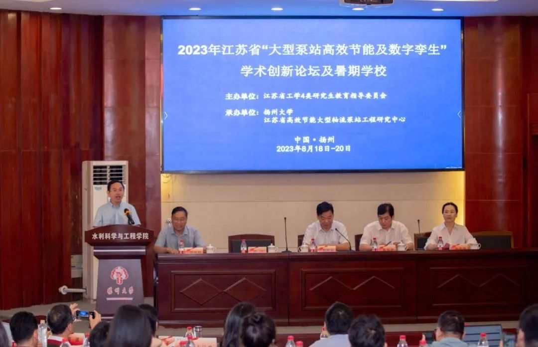 8月19日-20日,江苏省“大型泵站高效节能及数字孪生”学术创新论坛及暑期学校在我院举办。本次活动由江苏省工学4类研究生教育指导委员会主办,扬州大学、江苏省高效节能大型轴流泵站工程研究中心承办。来自武汉大学、河海大学、中国农业大学、华北电力大学、吉林大学、扬州大学、江苏大学、内蒙古大学、长沙理工大学、中国计量大学、内蒙古农业大学、长春工程学院等高校的200余位专家、学者、博硕士生和本科生出席了本次活动。
