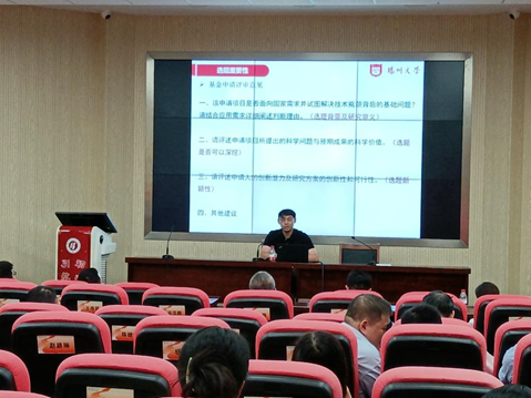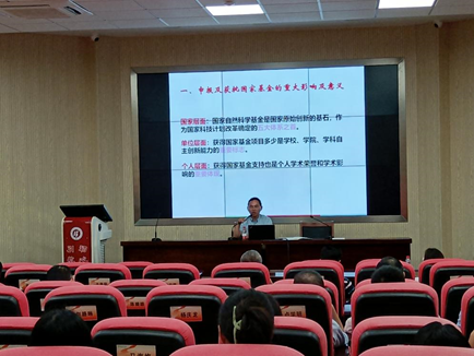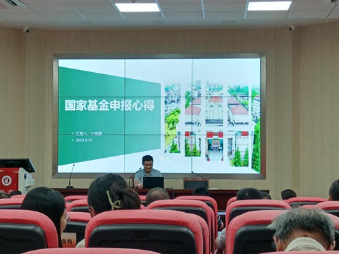 科技处项目管理科袁锐从国家基金资助情况、2024年国家基金整体申报安排,并针对学院基金申报和人才项目申报工作作了重要指导。付晓雷、焦伟轩两位老师围绕基金选题以及申报书的撰写进行了经验分享。