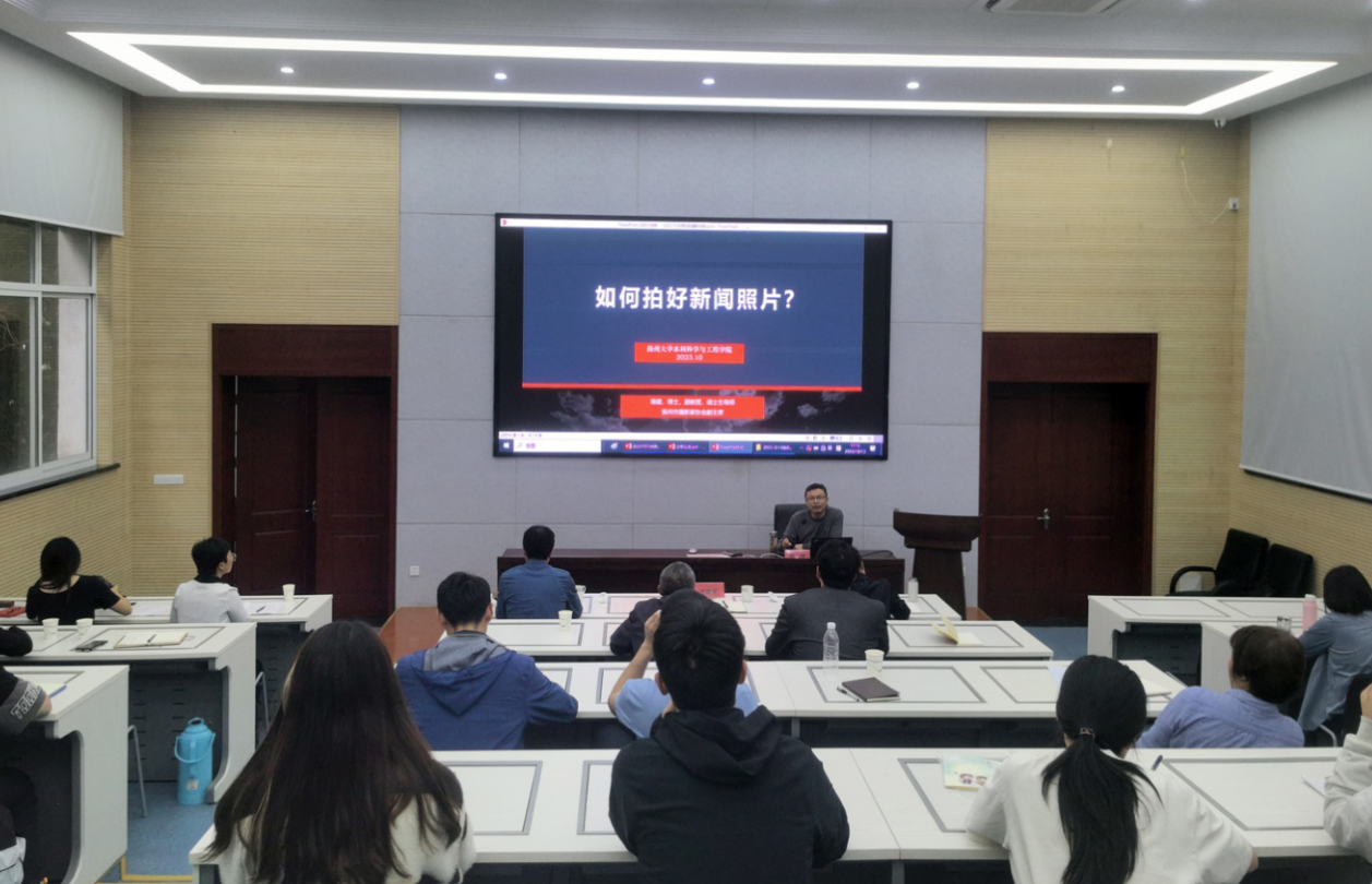 新闻传媒学院副教授杨健在新闻摄影方面给出有力指导。他拿出手机现场演示如何用手机也能拍出好照片,从拍摄前的准备、新闻摄影构图、人物表现展示了新闻摄影的具体方法和注意事项。并用反面图片举例说明了错误拍摄引起的不良后果,让受众易于接受、印象深刻。