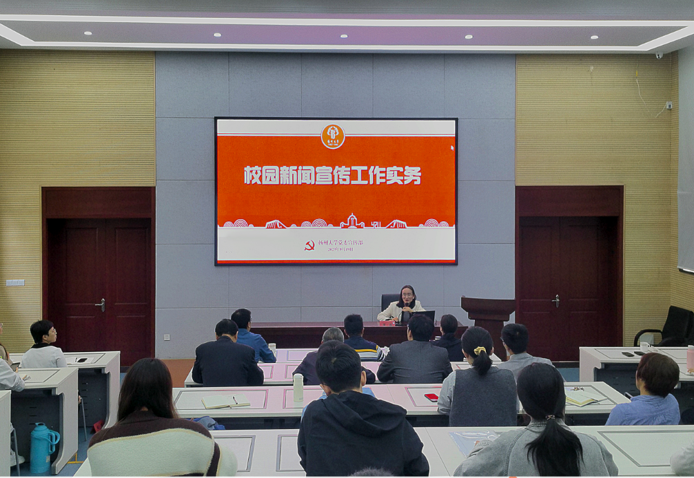 校党委宣传部副部长虞璐从校园新闻的写作知识、写作实操以及推送平台三个方面深刻阐述了校园新闻宣传工作实务。她通过展示主流媒体对我校办学成果的相关报道,分门别类地分享写稿经验。她强调宣传报道工作要紧跟时事,预测事实热点与学院关联度,深度挖掘和打造学院品牌特色,着力提升宣传报道数量和质量。