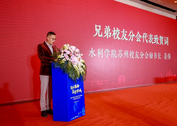 扬州大学校友会上海校友分会副会长兼秘书长谭万成、扬州大学水利科学与工程学院苏州校友分会秘书长姜伟分别向水利上海校友分会的成立表示祝贺,同时也表示未来在校友总会的指导下,将团结上海和苏州各地校友认真履行职责,拓展校友网络,创新校友活动,赋能校友组织,积极促进全国各地校友与学院、母校之间的互动往来,加强多种形式交流合作。