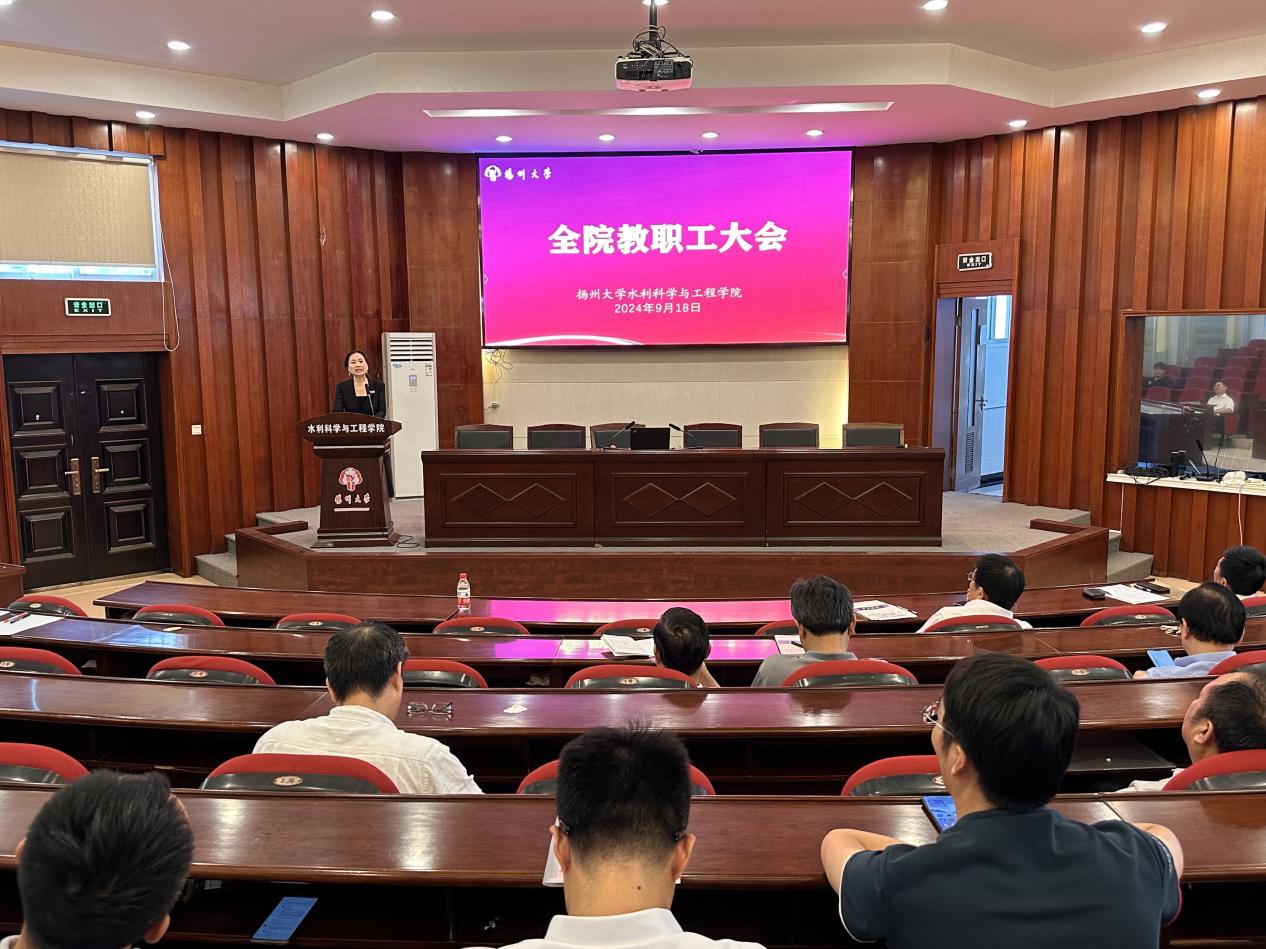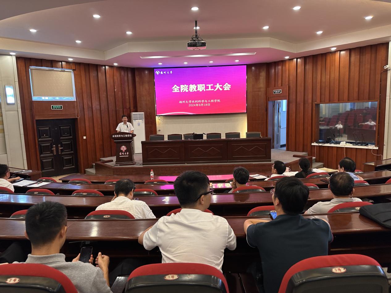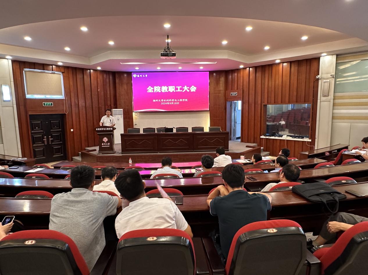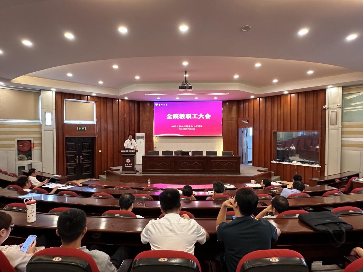 9月18日下午,学院在水利楼一楼报告厅召开全院教职工大会。会议由院党委书记王建军主持,全体院领导和全院教职工参加会议。