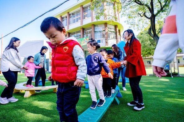 为培养小朋友们的安全意识,小老师们带领小朋友们模拟过桥,“小手拉大手,跟着爸爸妈妈一起走……”小朋友们在欢声笑语中安全过桥。
