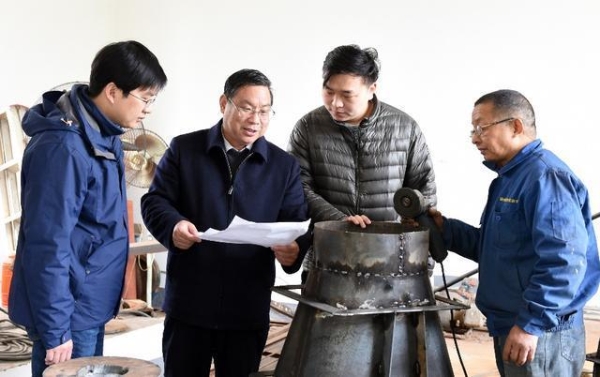 陆伟刚教授正在对泵装置流道模型加工制作进行指导